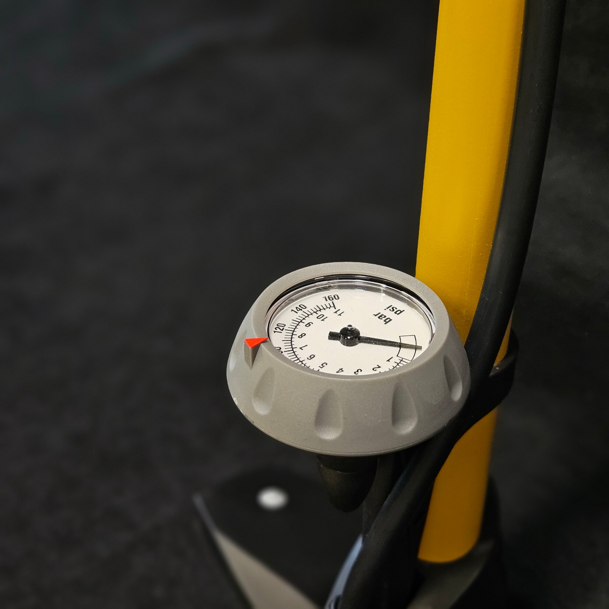 GIYO Насос GF55P высокого давления, напольный, двуручный, с верхним манометром, жёлто-чёрный (2016)