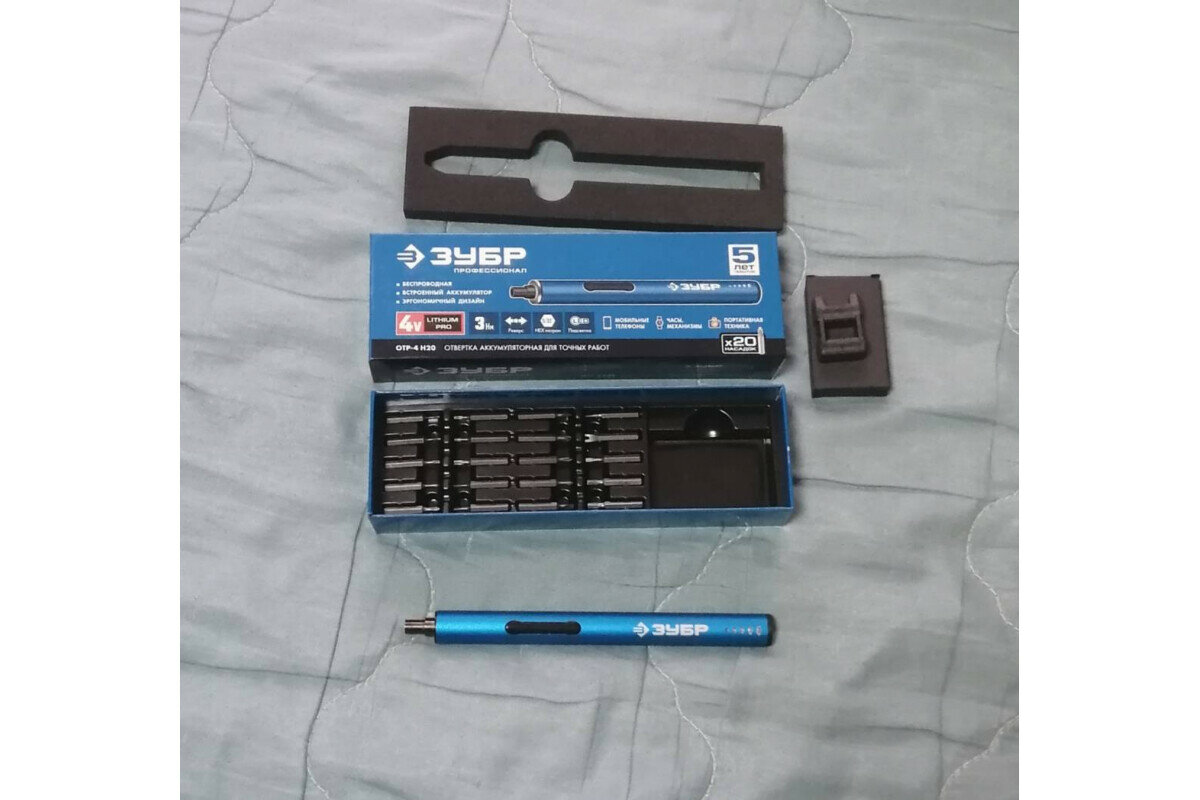 Отвертка аккумуляторная ЗУБР ОТР-4 Н20 для точных работ, с набором бит Профессионал