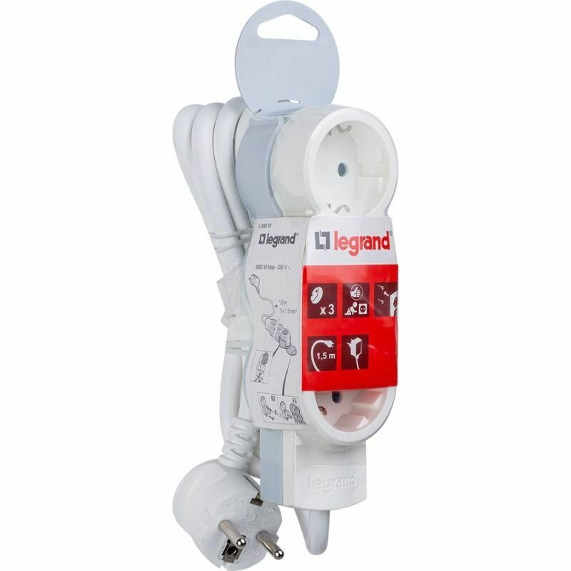 Удлинитель LEGRAND "Стандарт" 3 розетки с/з,шнур 1,5м., 3500W, возм. фиксации блока