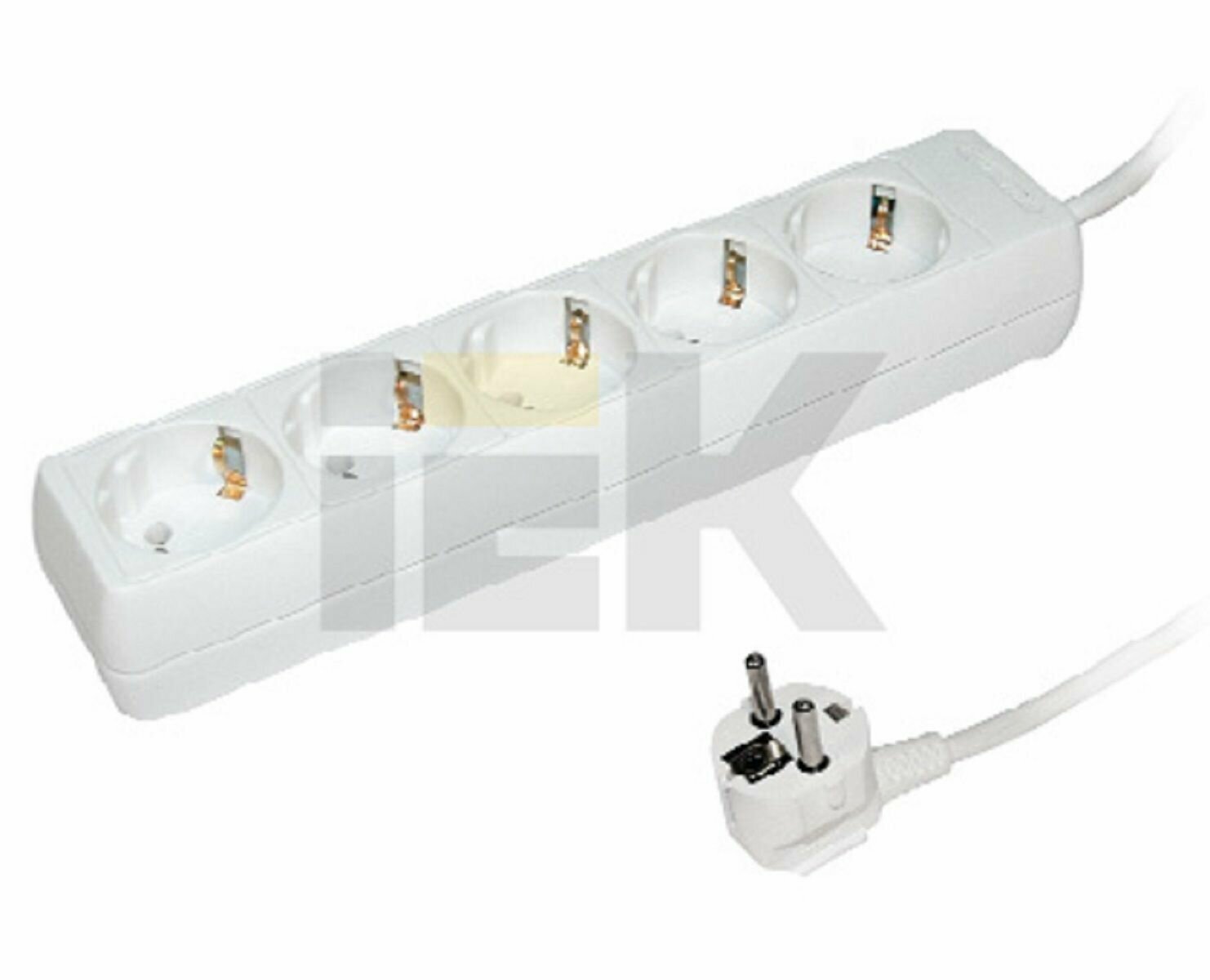 Удлинитель 5-мест. 5м 2P+E бел. 16А (ПВС 3х1,0) ИЭК
