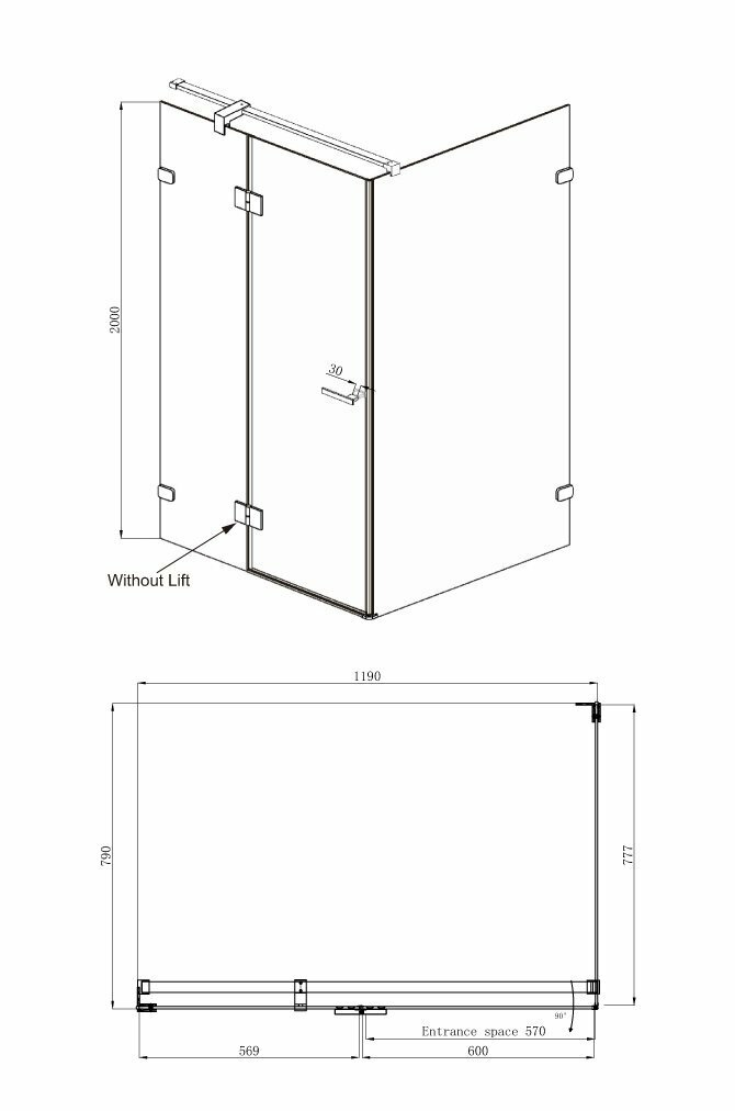 Душевой уголок 120х80 см с распашной дверью Ambassador Abner 10011103L: левостороннее душевое ограждение из стекла 6 мм, профиль хром