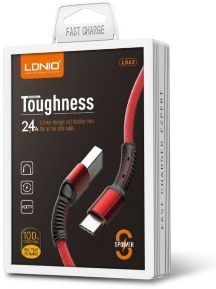 Кабель LDNIO LS63/ USB Type-C/ 1m/ 2.4A/ медь: 86 жил/ красный интересное: