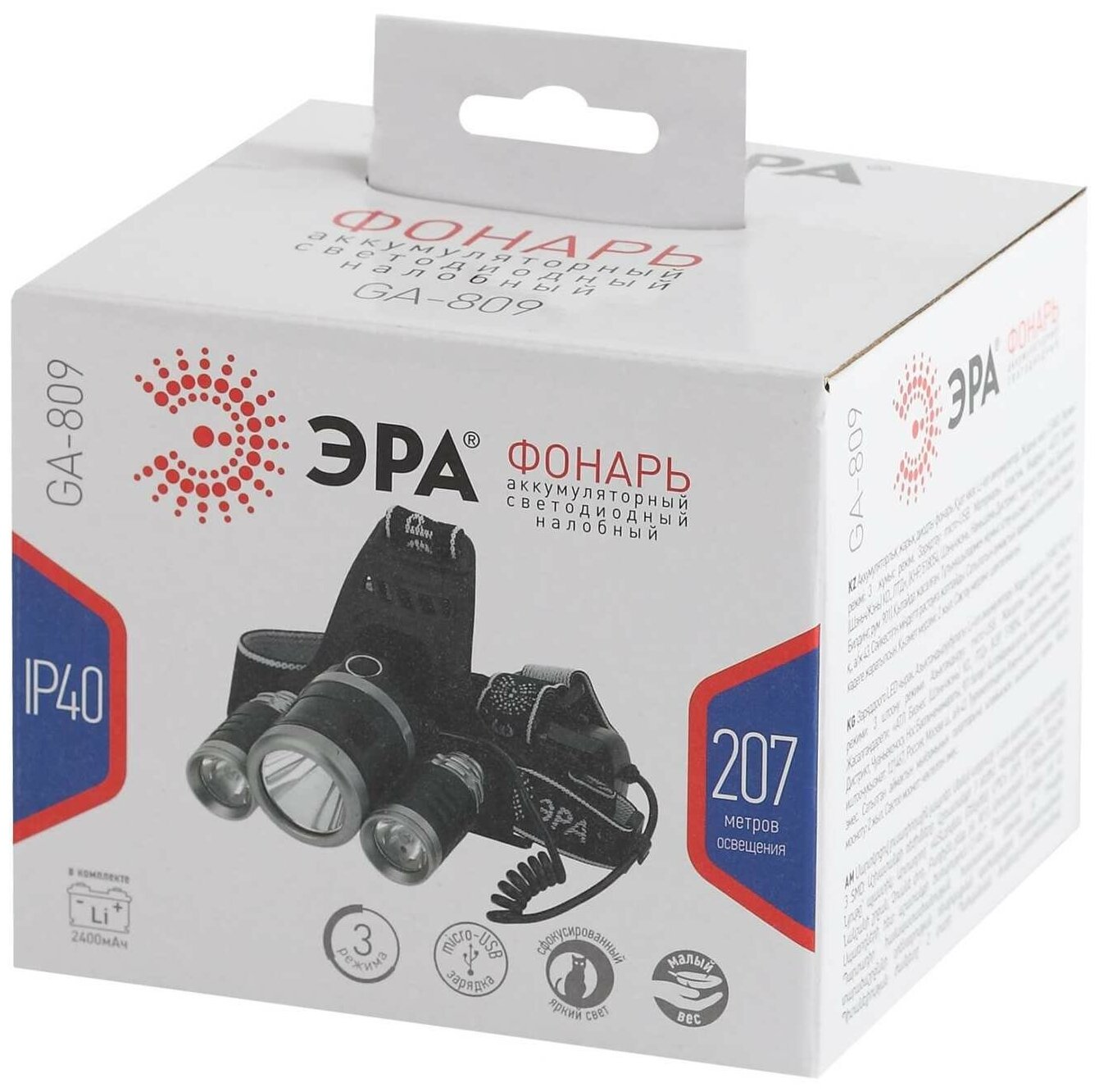 Фонарь GA-809 ЭРА налобный акк., трехламповый