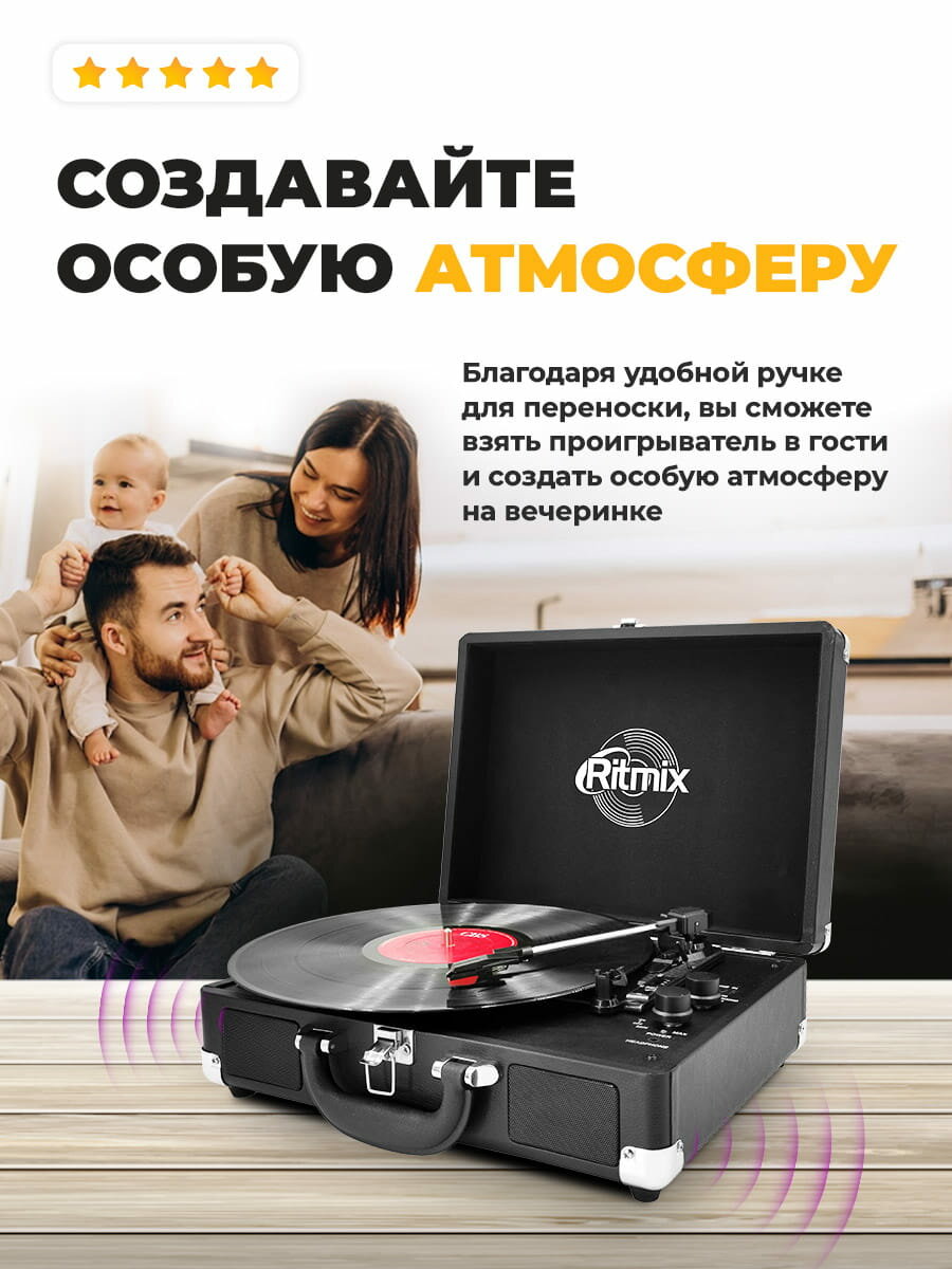 Проигрыватель виниловых дисков RITMIX LP-120B, 6 Вт, RCA, Jack 3.5, черный