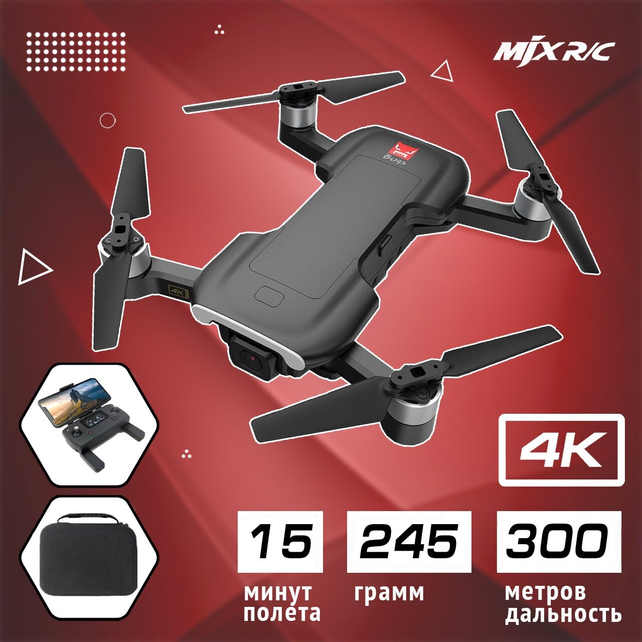 Радиоуправляемый складной квадрокоптер MJX с камерой 4K, до 300 м, с сумкой