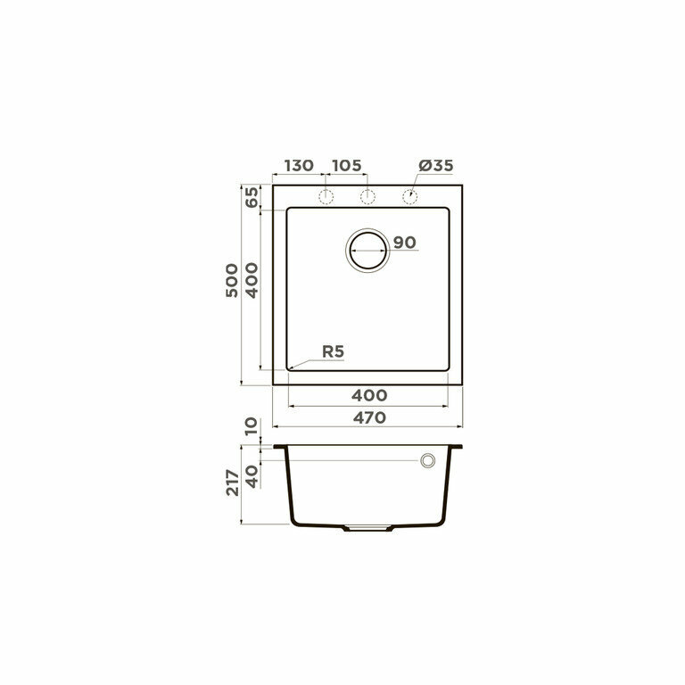 Мойка гранитная для кухни Omoikiri Bosen 47-EV 470х500 мм 4993592 эверест