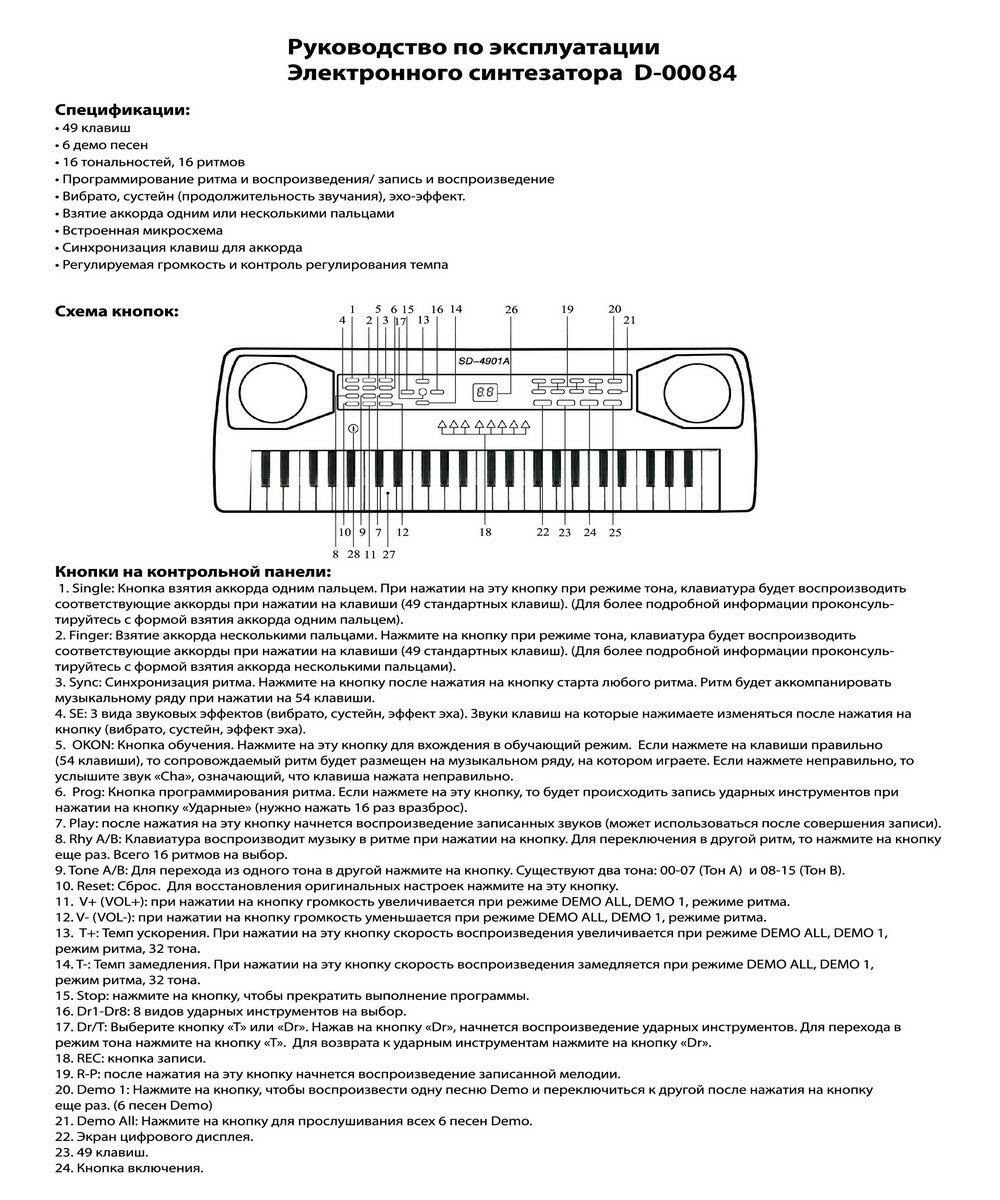 | Количество клавиш | 49 |