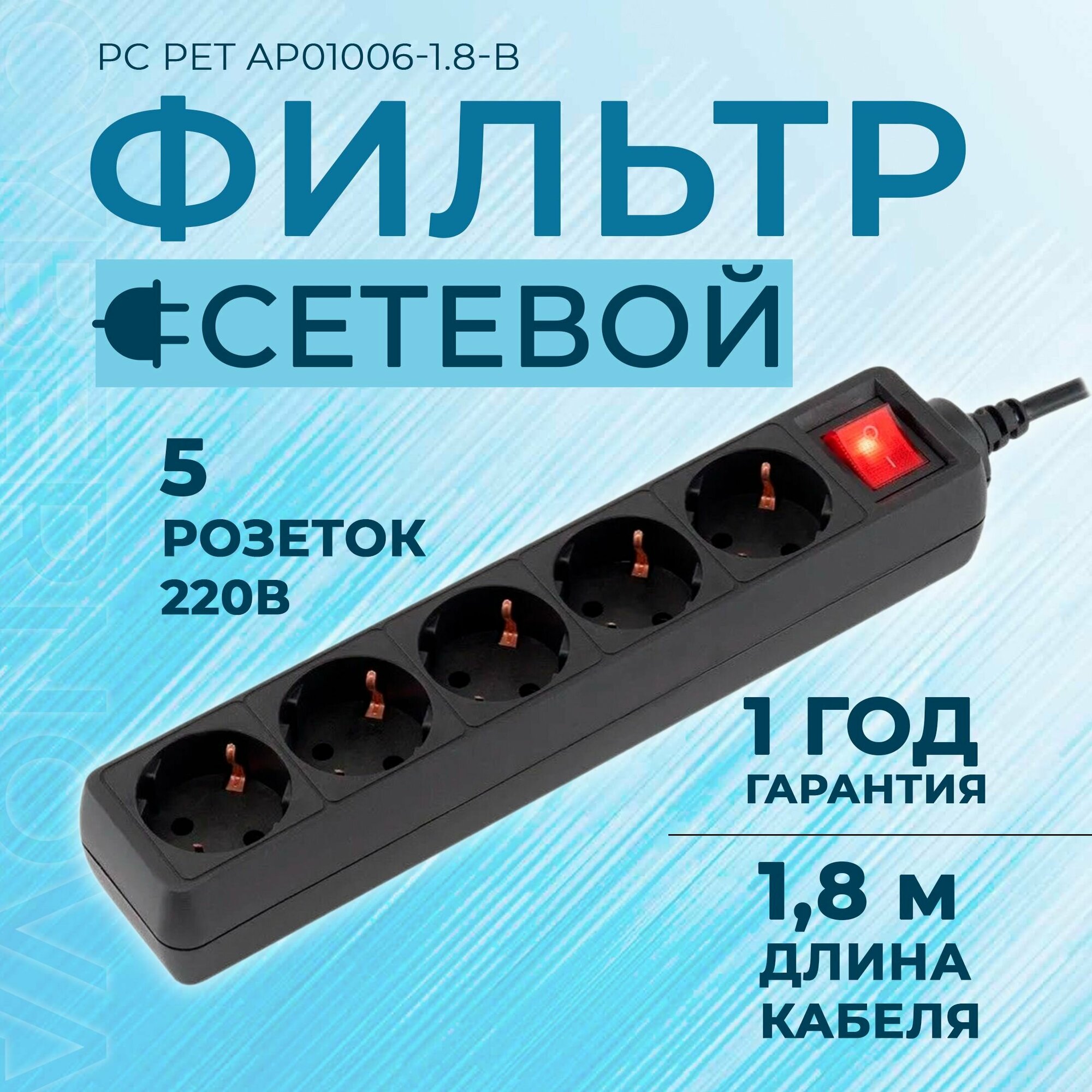 Сетевой фильтр pc pet 1.8м 5 розеток чёрный (ap01006-1.8-b)