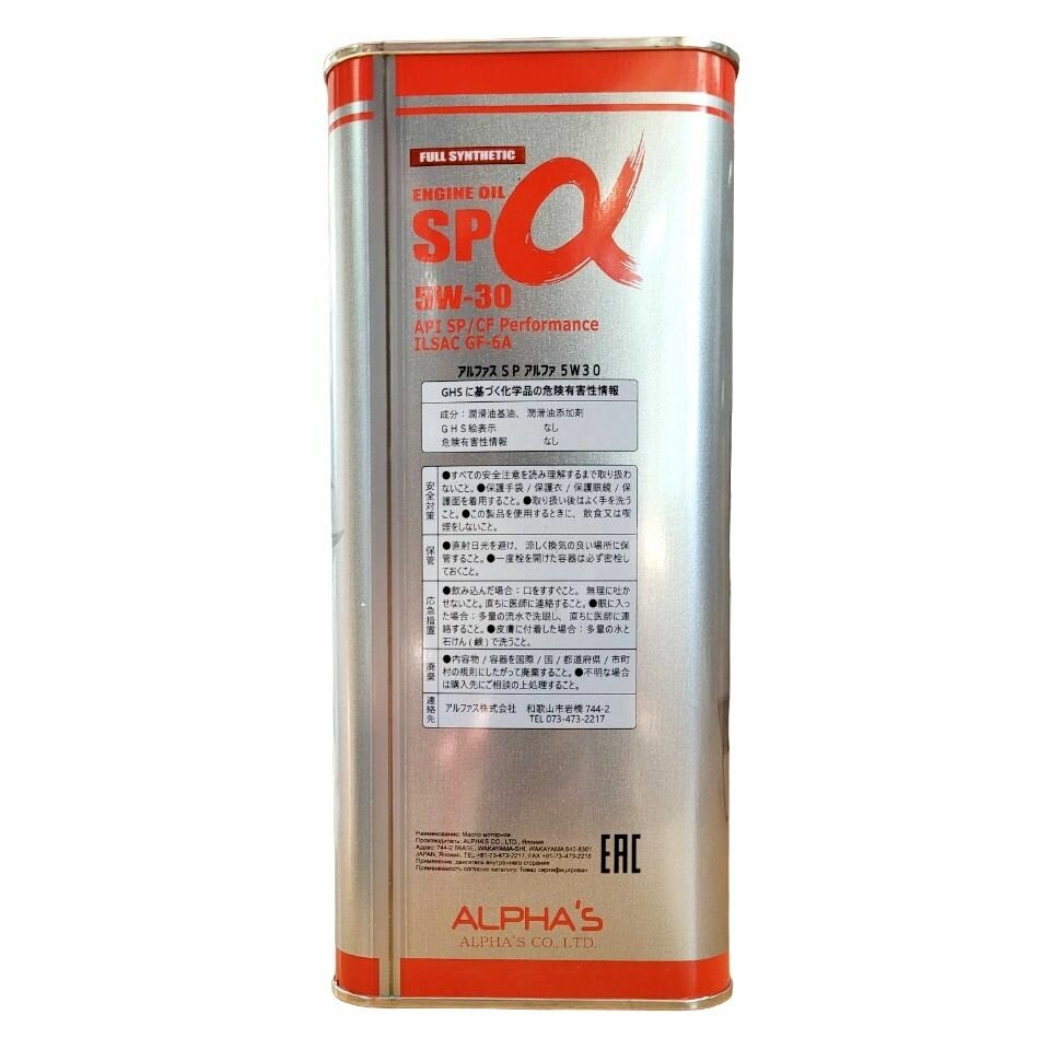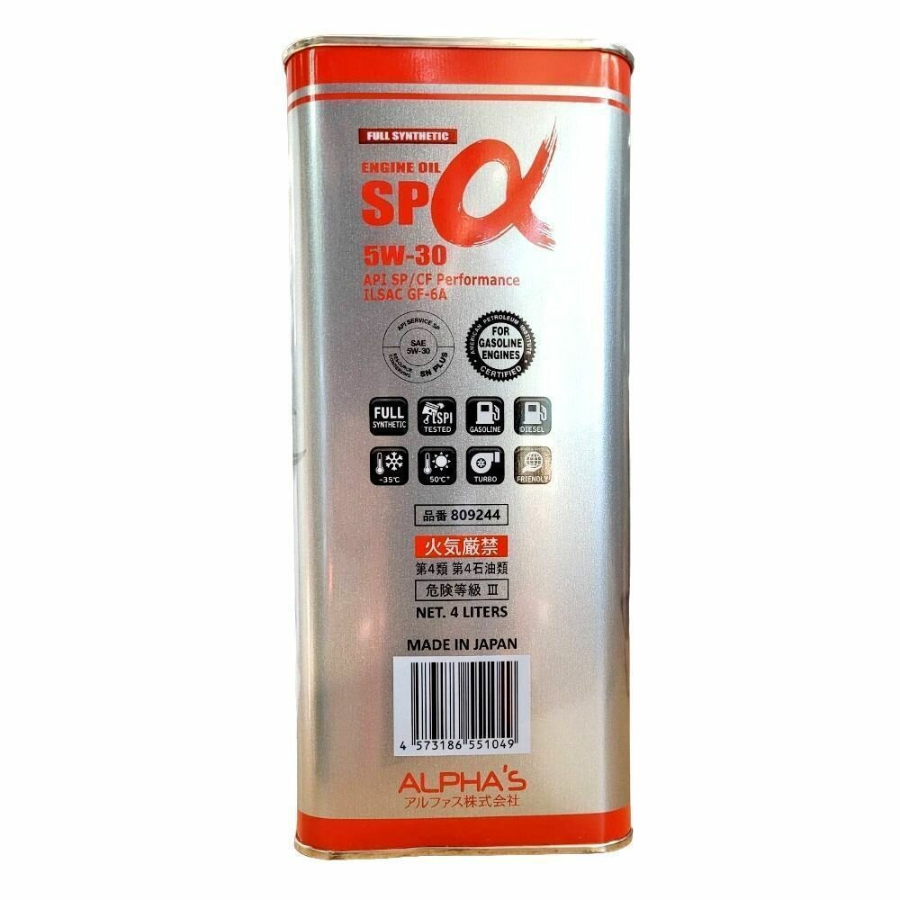 Alpha’s Sp Alpha 5w30 4l Масло Моторное Api Sp/Cf Performance, Ilsac Gf-6a Fully Synthetic ALPHA'S арт. 809244