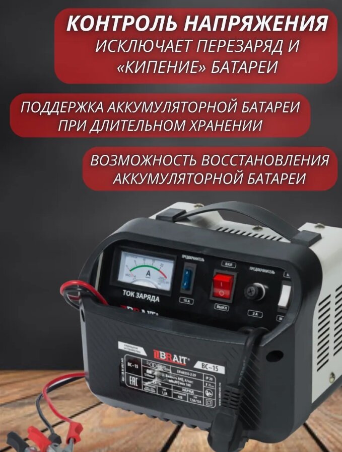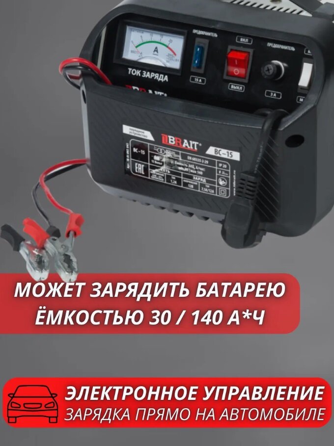 СохранитьУстройство зарядное BRAIT BC-15 (Напряжение 12/24В, емкость 18-120А/ч, сеть 220В-50Гц, ток 8А/15А, m интересное: