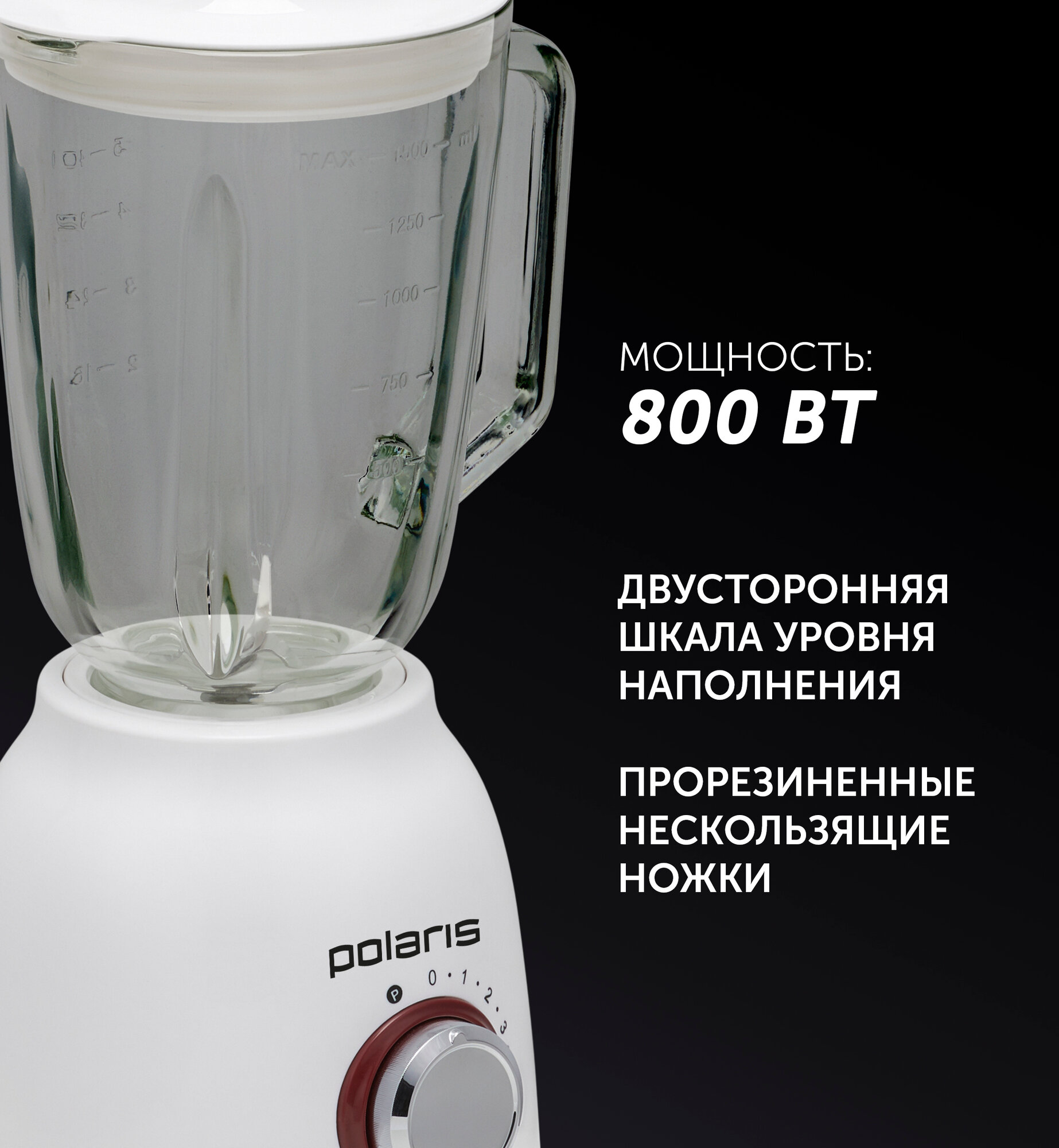 Блендер Polaris PTB 0821G, стационарный, белый/красный .