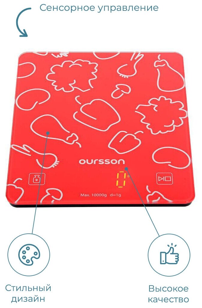 СохранитьВесы кухонные OURSSON KS1001GD/RD, красный/рисунок интересное: