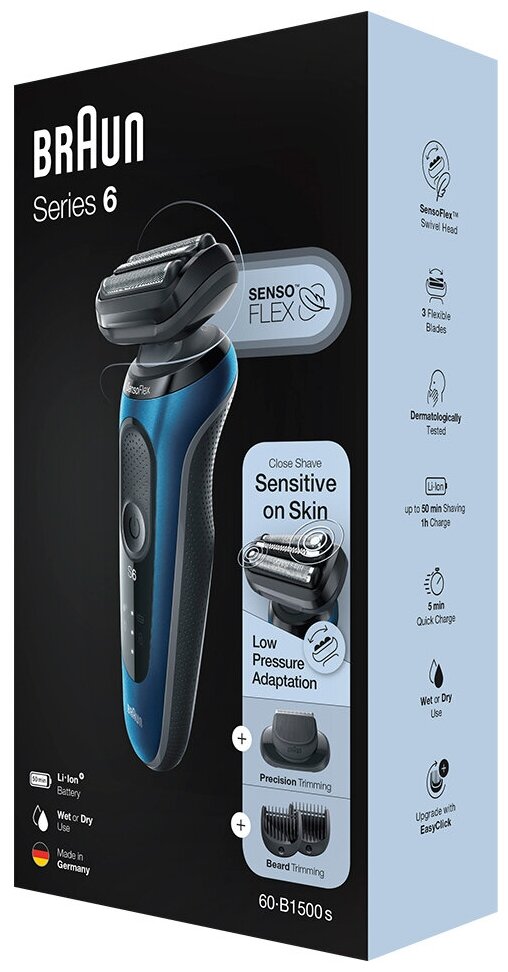 Электробритва Braun 60-B1500s Series 6, синий/черный интересное: