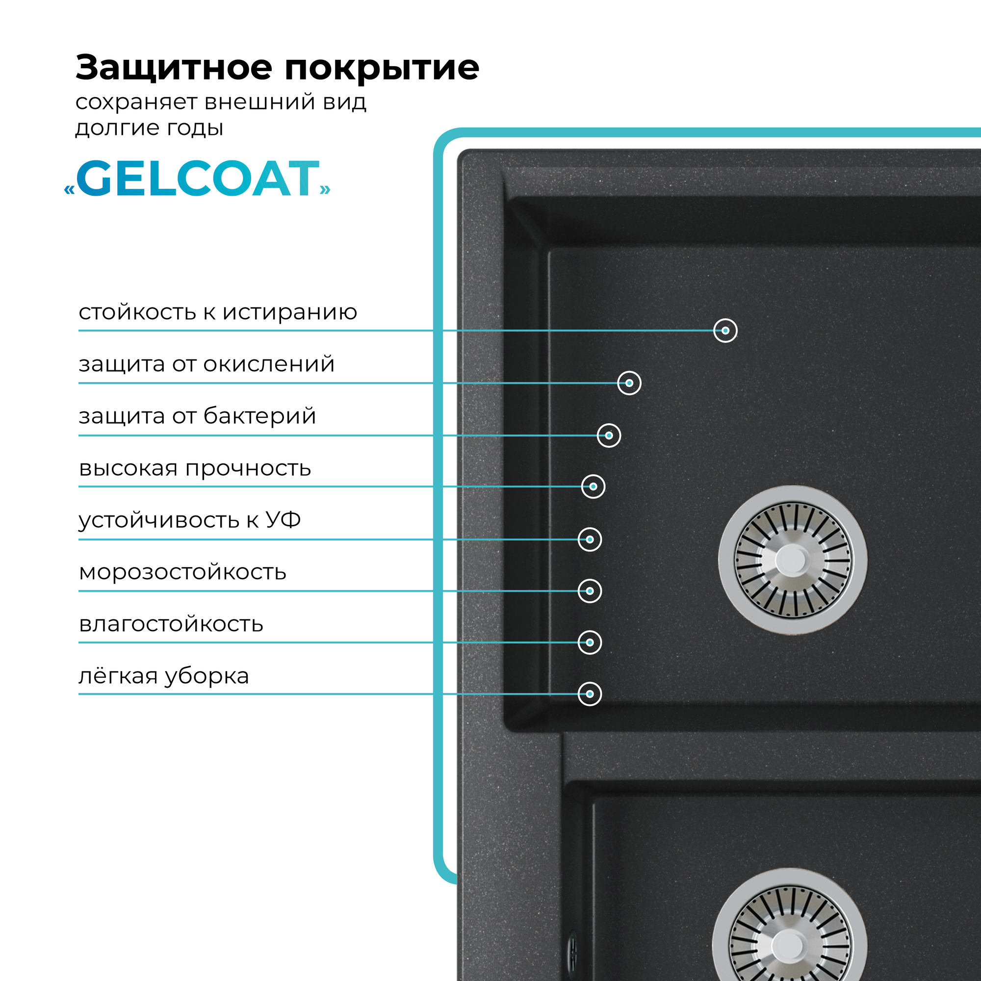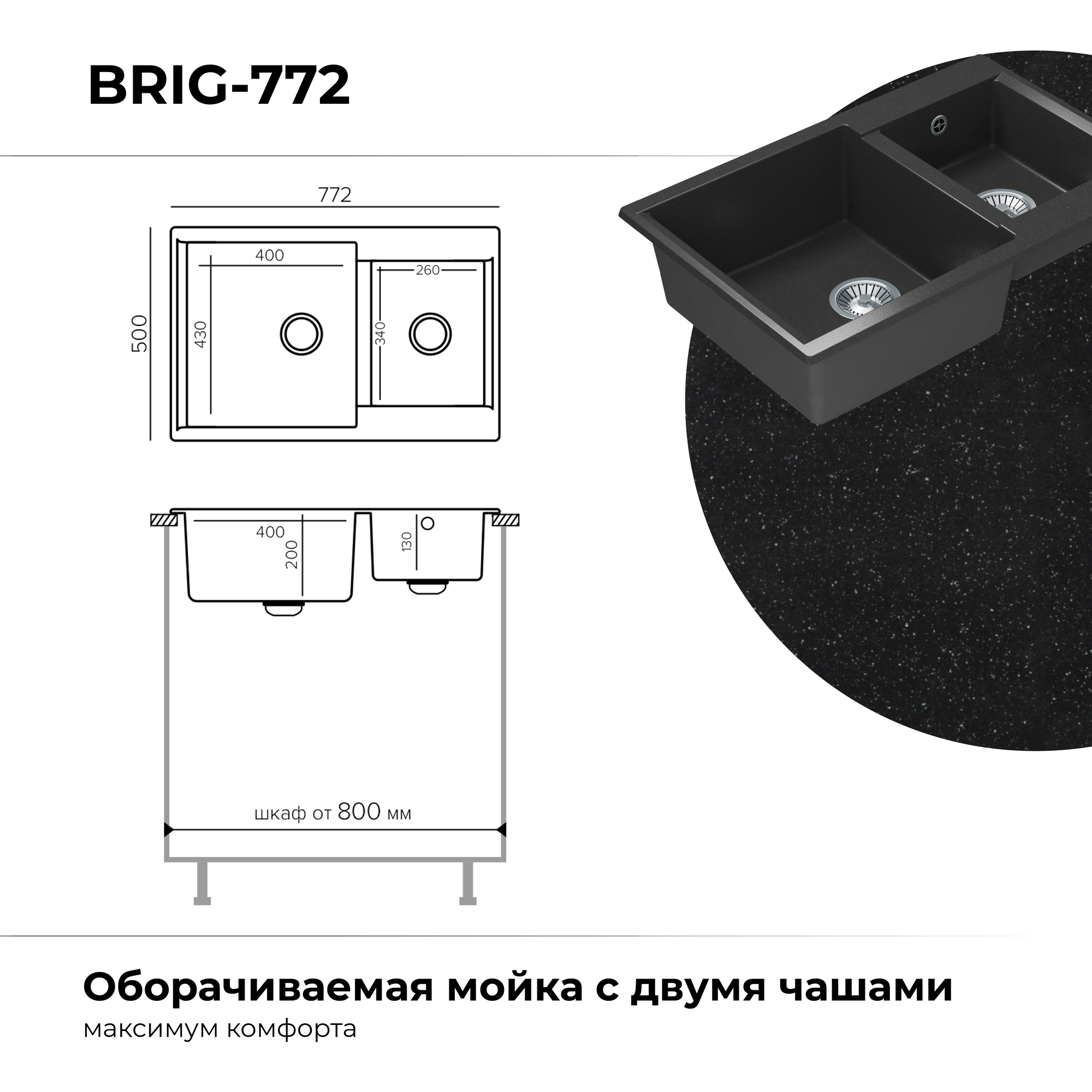 Мойки Polygran BRIG-772, мойка, мрамор, черный 16