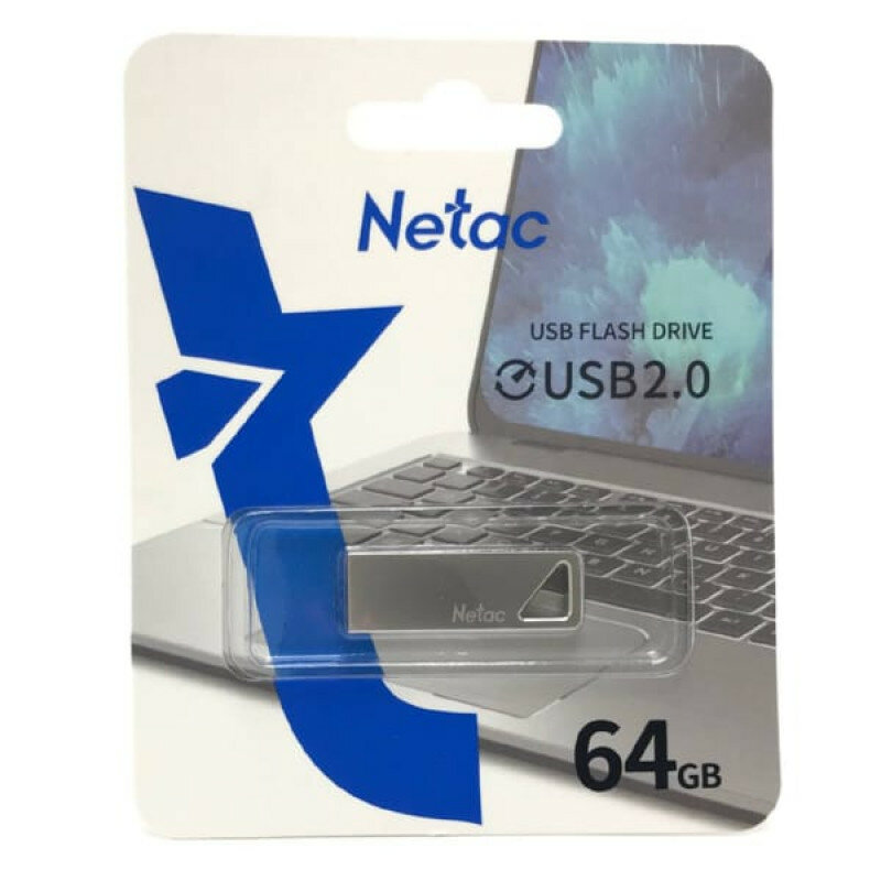Флешка (flash-накопитель) Netac U326, 64 ГБ, USB 2.0, серебристый металл, NT03U326N-064G-20PN