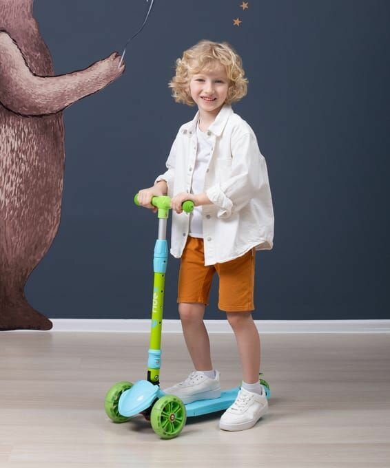 Самокат 3-колесный Bunny, 135/90 мм, голубой/зеленый
