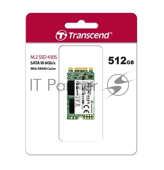 Твердотельный диск 512GB Transcend MTS430, M.2 2242, SATA, 3D TLC, with DRAM [R/W - 560/500 MB/s]