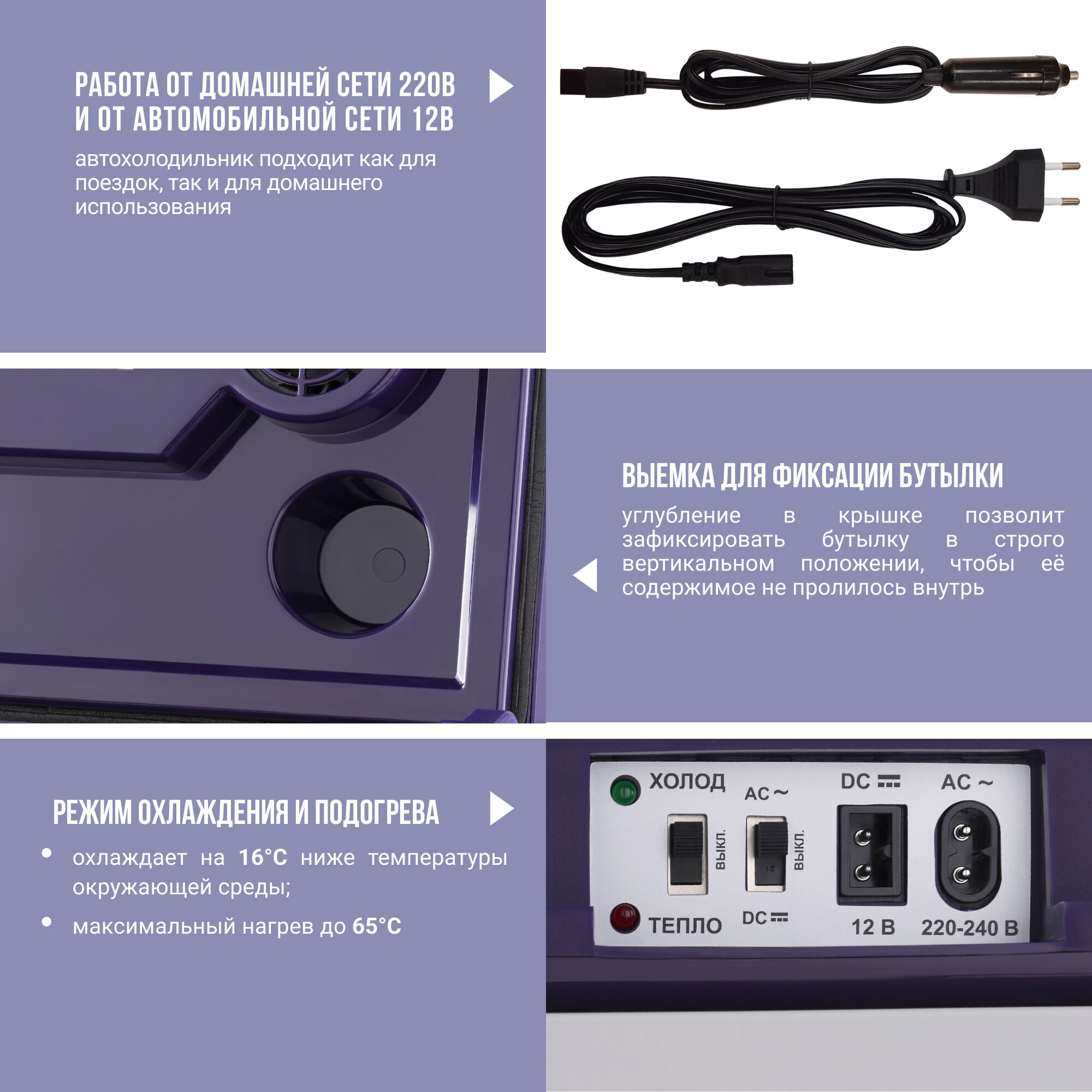 | Плюсы: | Хороший объем, долго держит холод, работает от двух источников питания. |