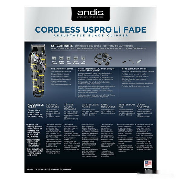 Машинка для стрижки волос ANDIS Cordless US Pro Li Fade Nation, нож 46 мм, 0.2-0.5 мм, аккум/сетевая, 5 насадок 73100 LCL