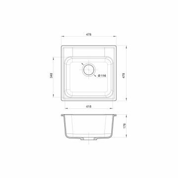 Врезная кухонная мойка 47.8 см, GranFest Quarz GF-Z48, черный