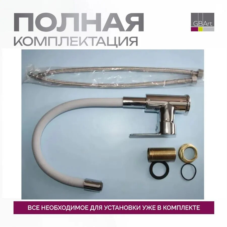 Смеситель для кухни Haiba HB70112-8 с гибким силиконовым изливом, белый/хром.
