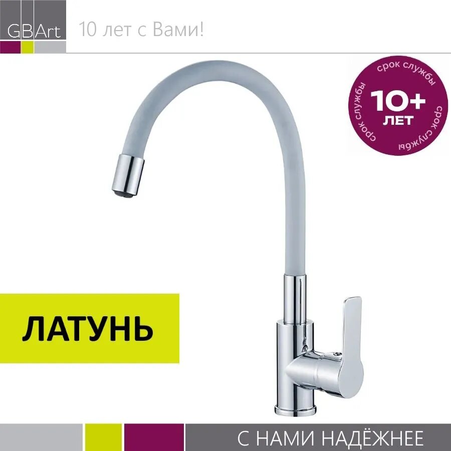 Смеситель для кухни силиконовый с гибким изливом, серый/хром