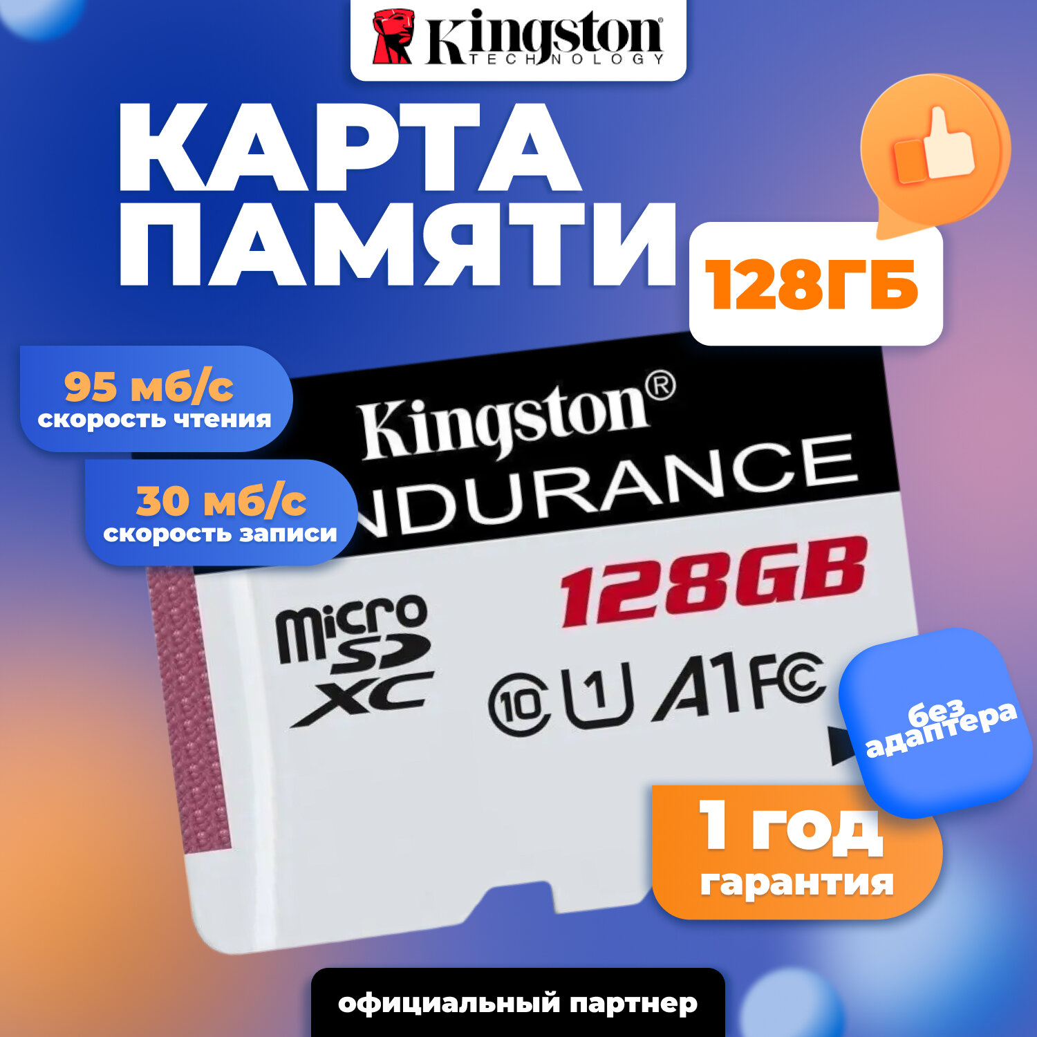 Kingston High Endurance microSDXC 64 ГБ SDCE/64GB Class 10, A1, UHS Class 1, запись - 30 Мбайт/сек, чтение - 95 Мбайт/сек (290226)