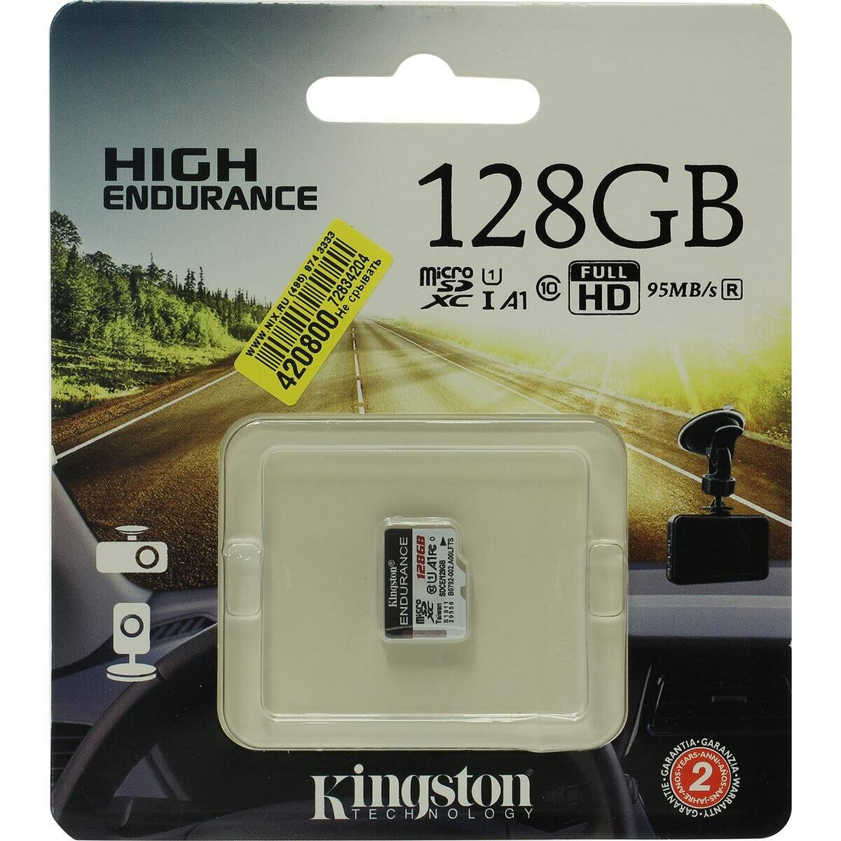 Карта памяти microSDXC UHS-I U1 Kingston High Endurance 128 ГБ, 95 МБ/с, Class 10, SDCE/128GB, 1 шт., переходник без адаптера