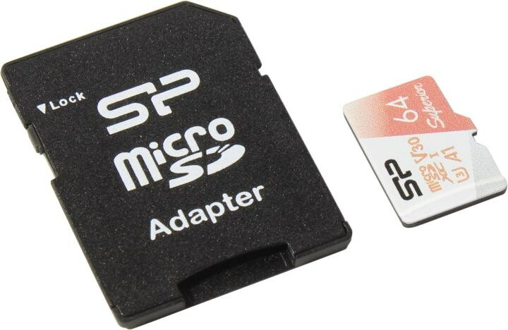 Карта памяти 64GB Silicon Power SP064GBSTXDV3V20SP microSDXC Class 10 UHS-I U3 100/80 Mb/s Superior A1 (SD адаптер)