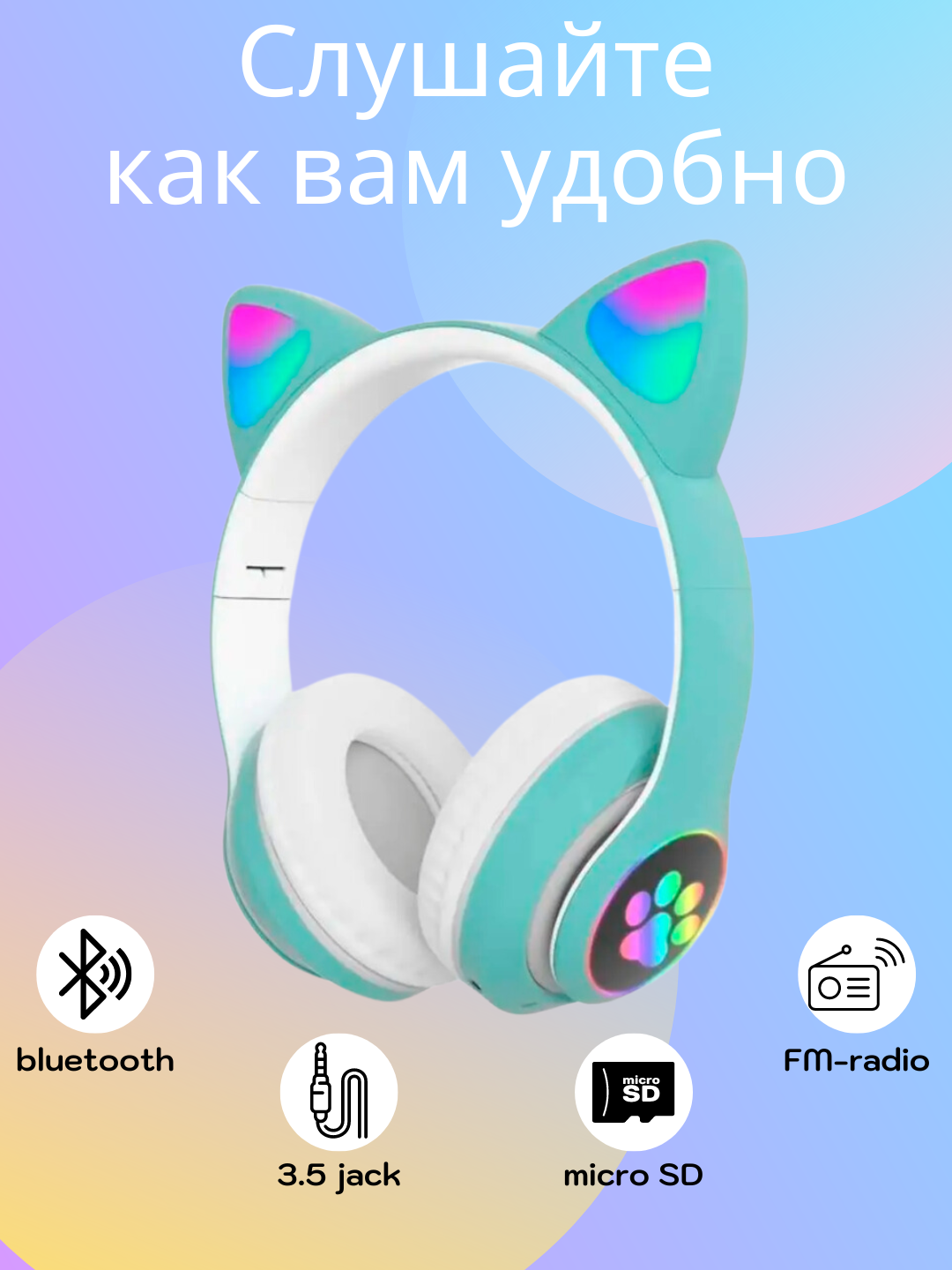 Беспроводные наушники со светящимися ушками кошки Cat STN-28, зеленый интересное: