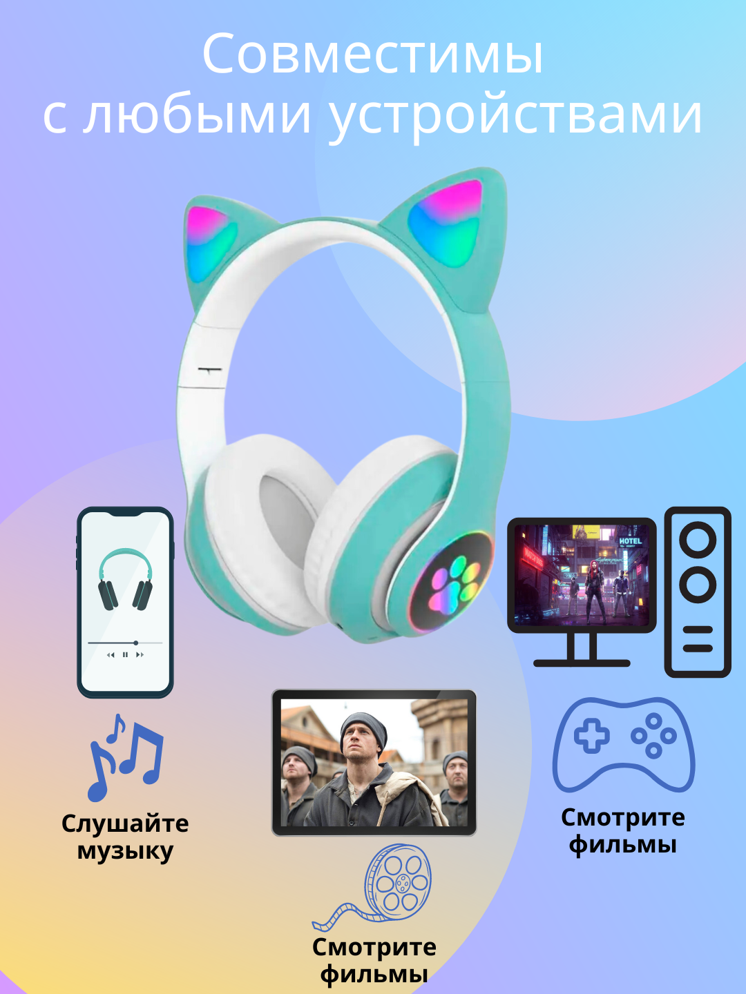 | Отзыв: | Купил в подарок своей дочке она у подруги увидела такиеже о загорелась, носится с ними радуется слушает любимую музыку, наушники на ней смотрятся очень красиво, а по вечерам горящая подсветка привлекает внимание и подымает настроение окружающим))) |