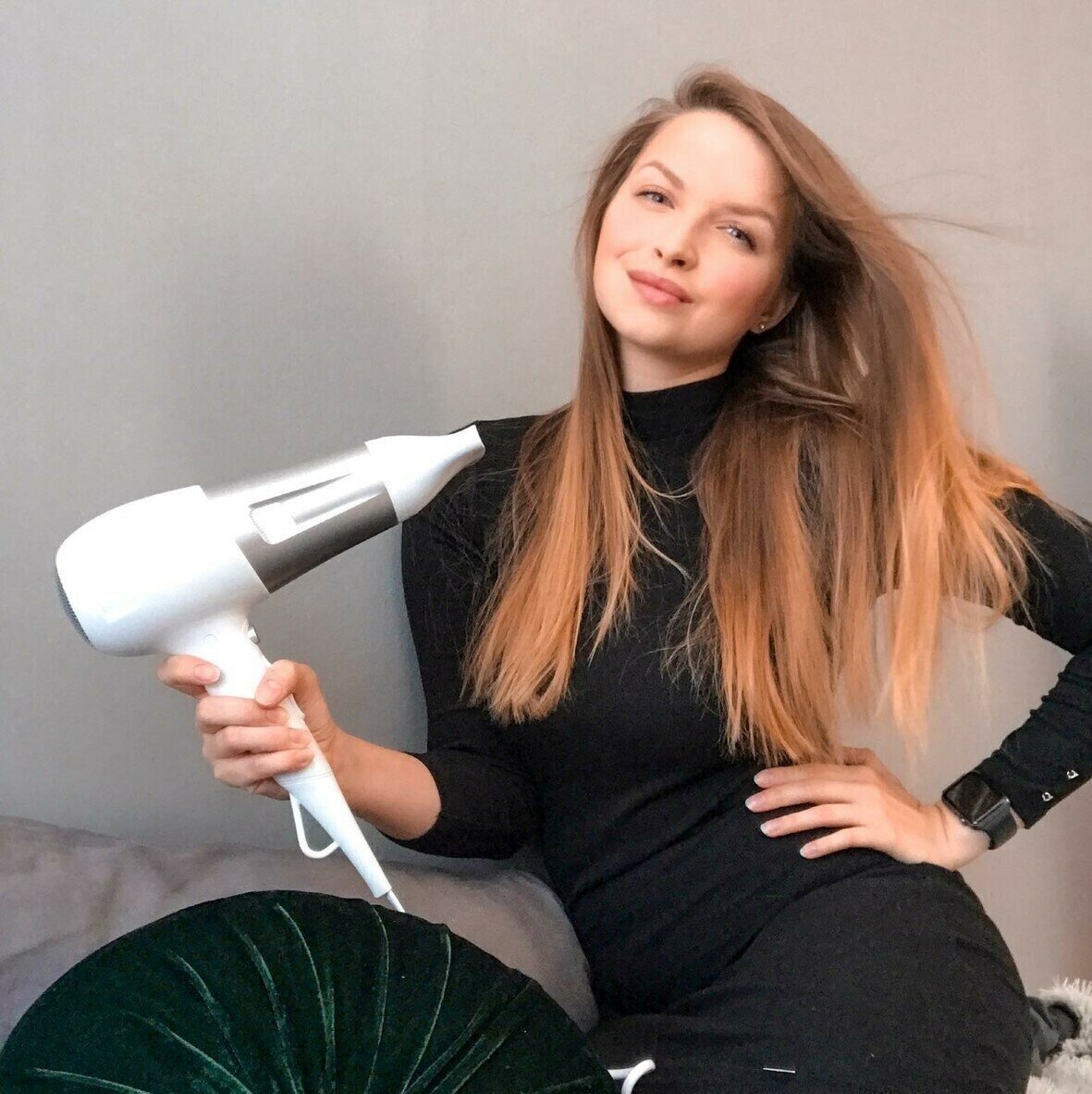 | Плюсы: | Мощный, хорошо укладывает, быстро сушит. |