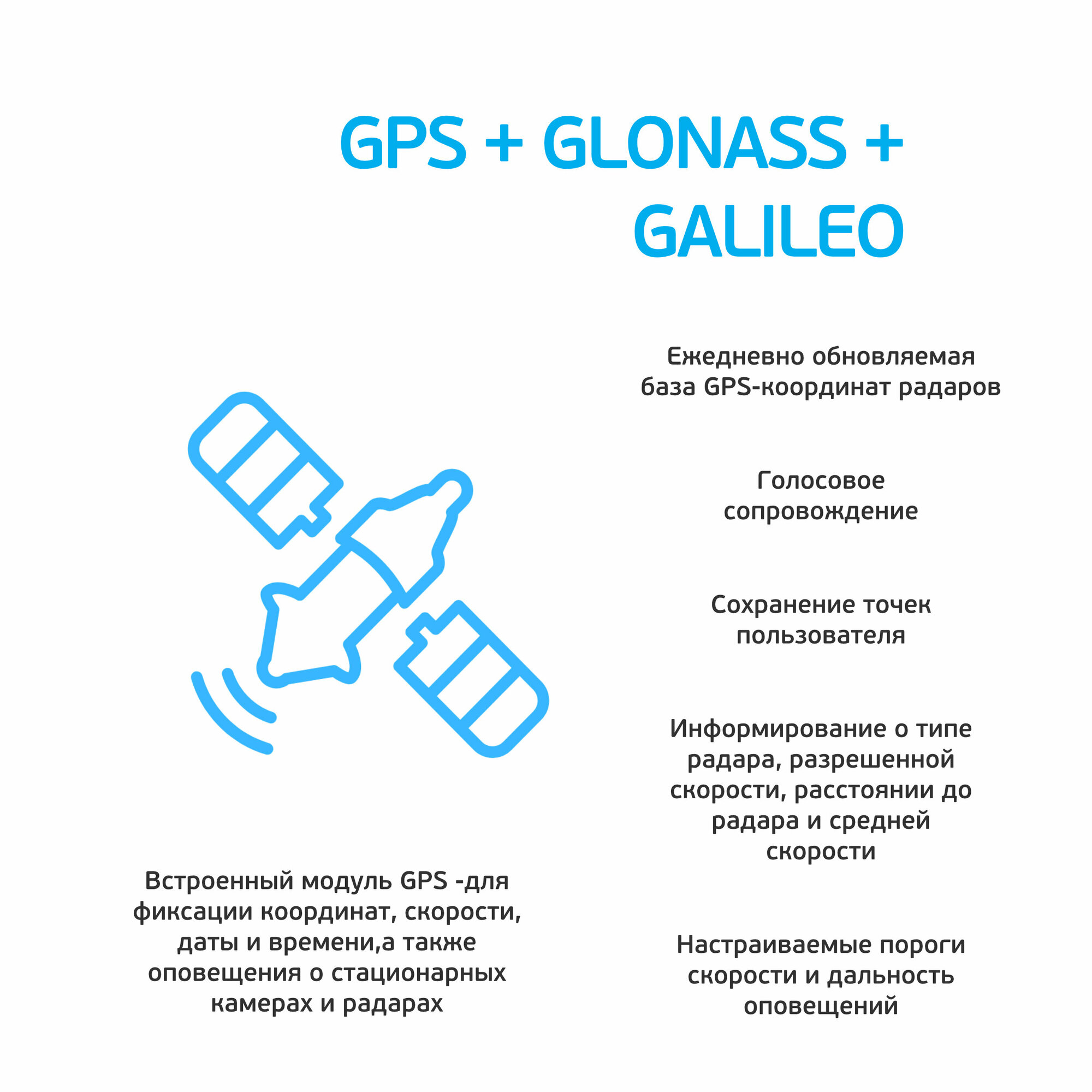 Хорошо ловит спутники через стекло с обогревом.Определяет как фактическое расположение радаров так и по координатам gps. |