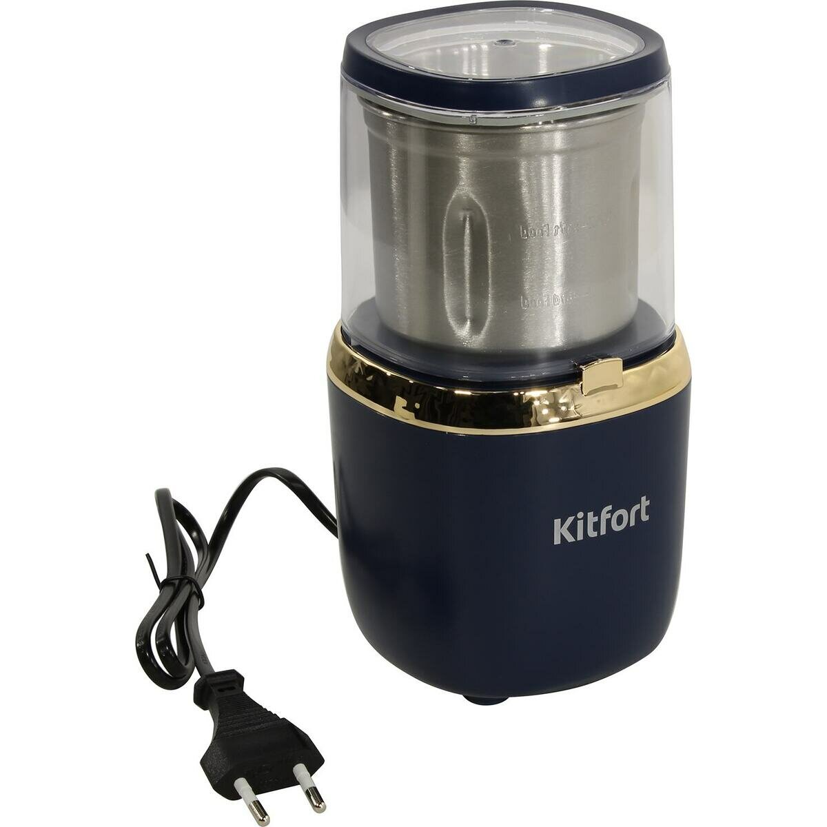 Кофемолка электрическая Kitfort KT-769 синий, мощность 200 Вт, 60 г зерен, 200 мл чаша, 20000 об/мин