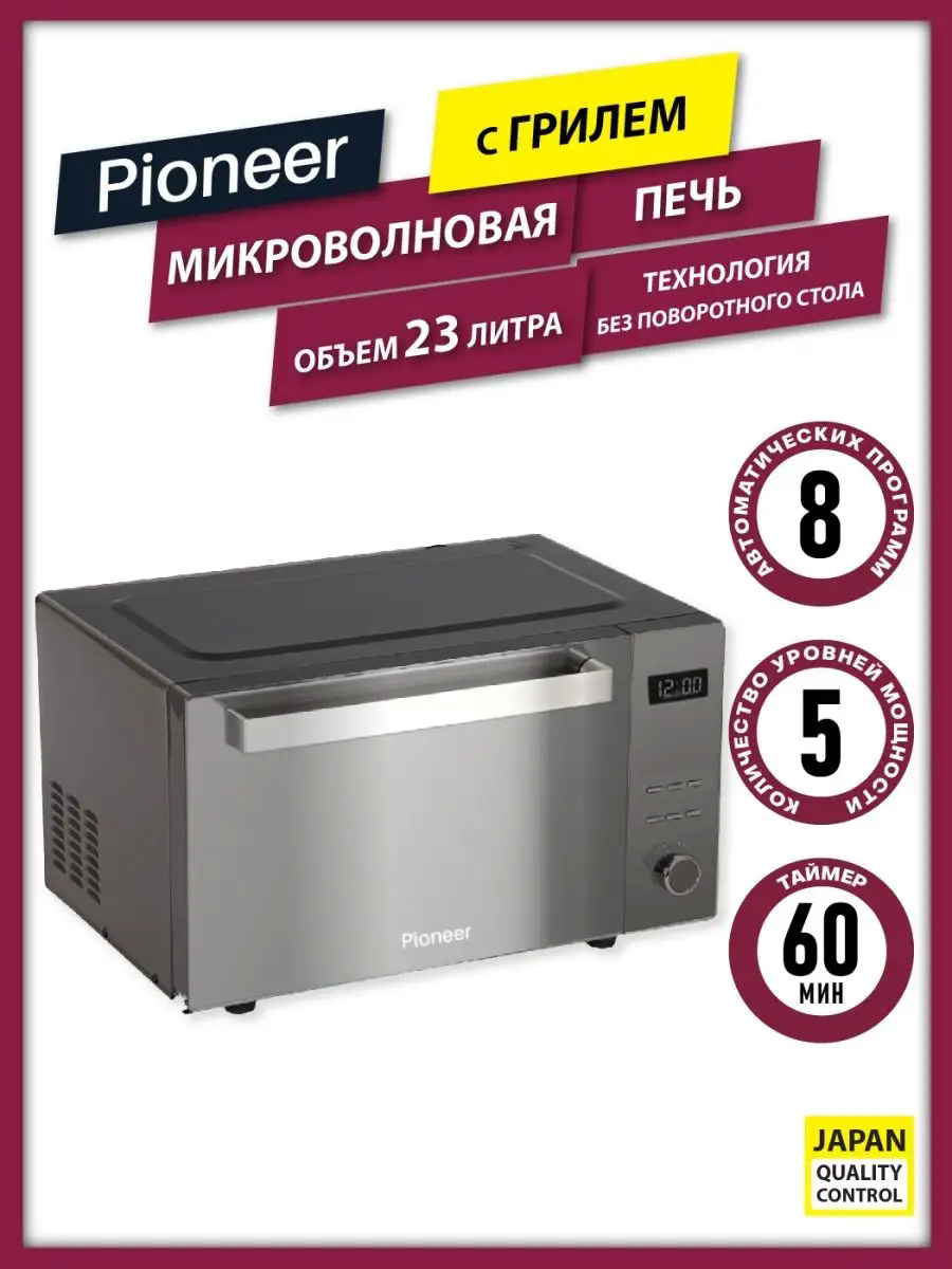 Ниже Вы можете прочитать отзывы на Микроволновая печь Pioneer MW360S 23 л с авторазмораживанием, грилем, таймером и часами, 5 уровней мощности, 800 Вт, ознакомится с подробными характеристиками, посмотреть интересные обзоры и фотографии на Микроволновая печь Pioneer MW360S 23 л с авторазмораживанием, грилем, таймером и часами, 5 уровней мощности, 800 Вт.