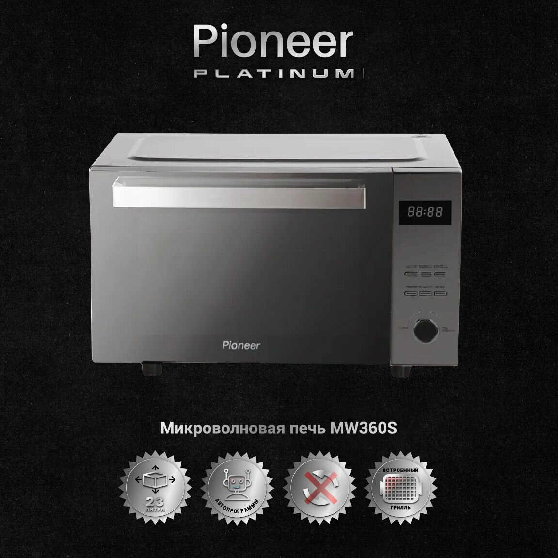 Микроволновая печь Pioneer MW360S 23 л с авторазмораживанием, грилем, таймером и часами, 5 уровней мощности, 2 года гарантии, 800 Вт