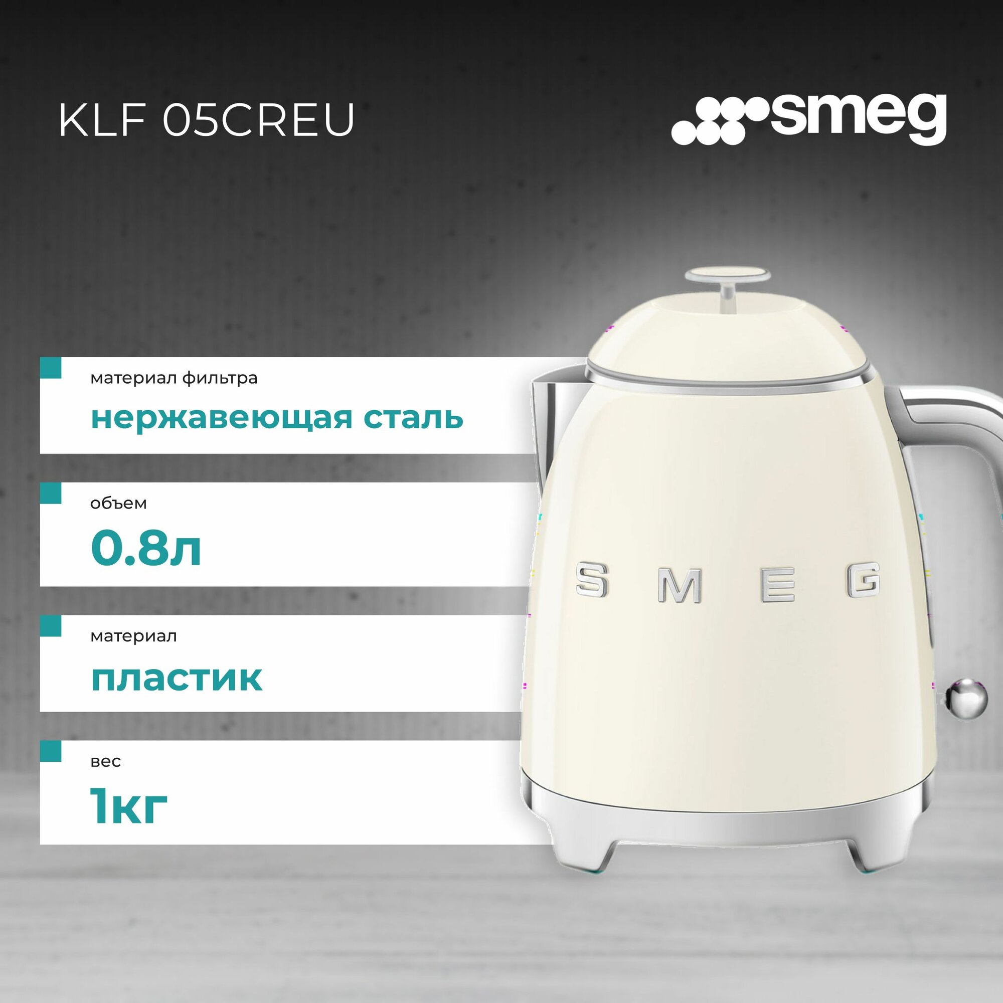 Чайник SMEG KLF05CREU 0.8л. 1400Вт пластик, кремовый (1334093)