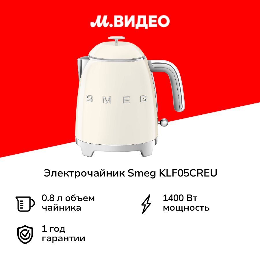 Чайник SMEG KLF05CREU 0.8л. 1400Вт пластик, кремовый (1334093)