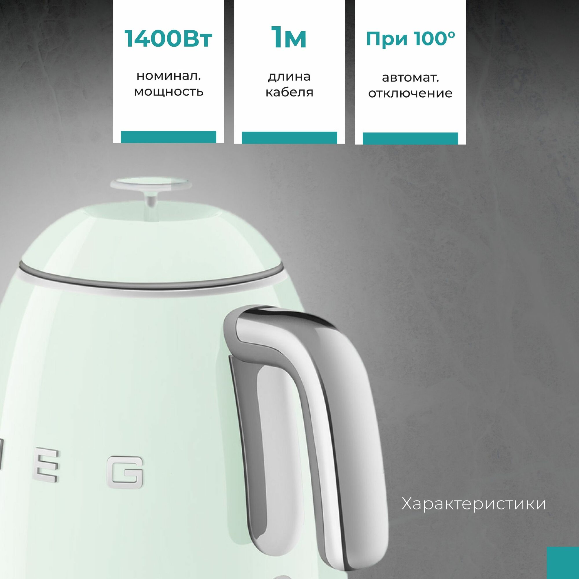 Чайник электрический SMEG KLF05PGEU / мощность 1400 Вт / пастельный зеленый