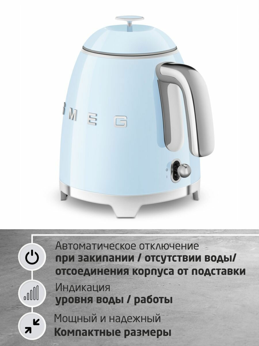 Чайники SMEG/ Мини чайник электрический, 0.8 л, пастельный голубой
