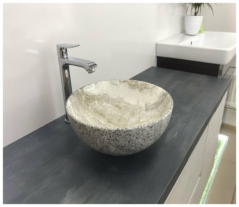 CeramaLux Раковина накладная круглая под серый камень MNC 487 CeramaLux