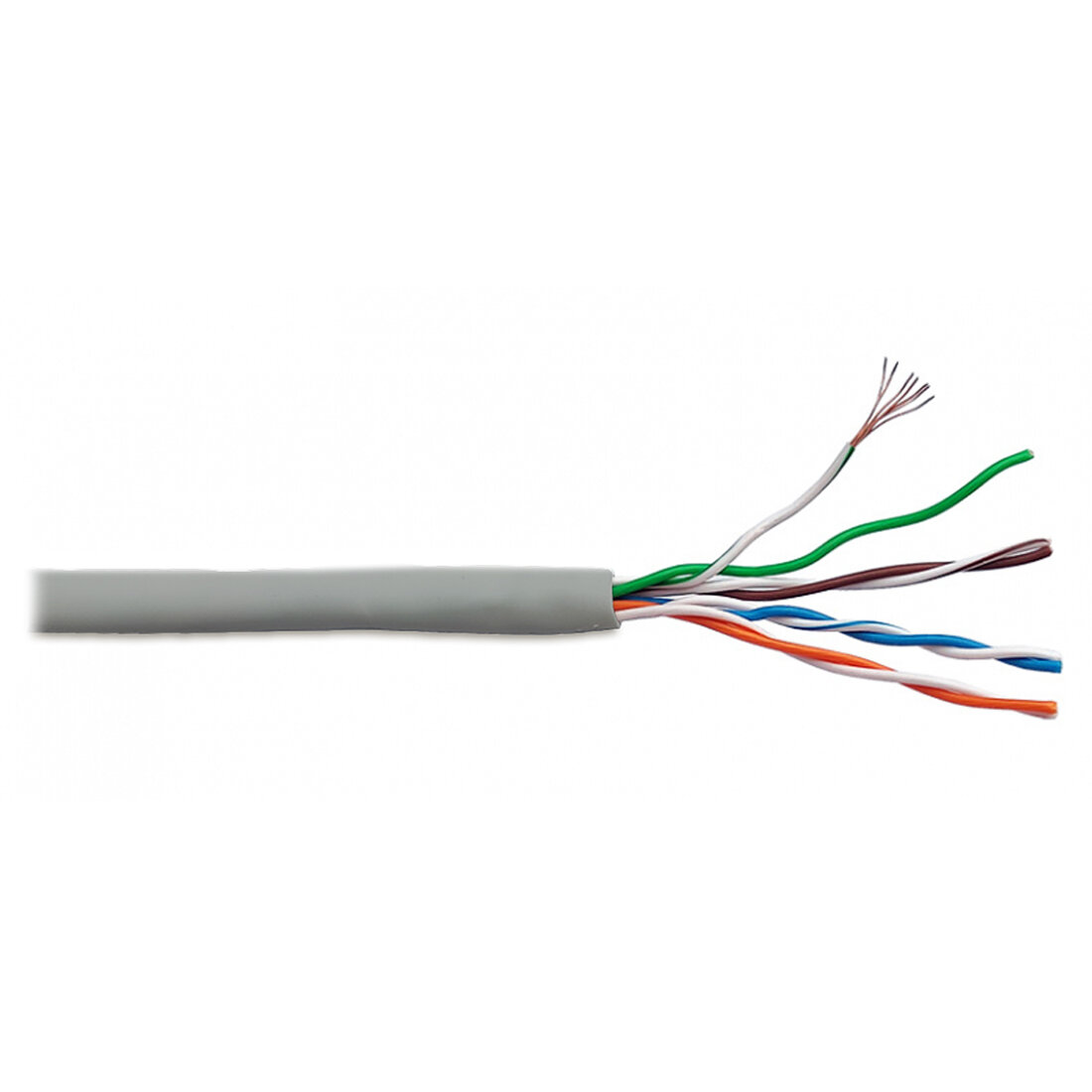 Кабель витая пара U/UTP 5e кат. 4 пары TWT TWT-5EUTP 24AWG(0.51 мм), медь, одножильный (solid), внутренний, PVC, серый, уп/305м