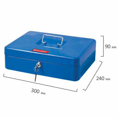 Ящик для денег, ценностей, документов, печатей, 90х240х300 мм, ключевой замок, синий, BRAUBERG, 290336, 290336