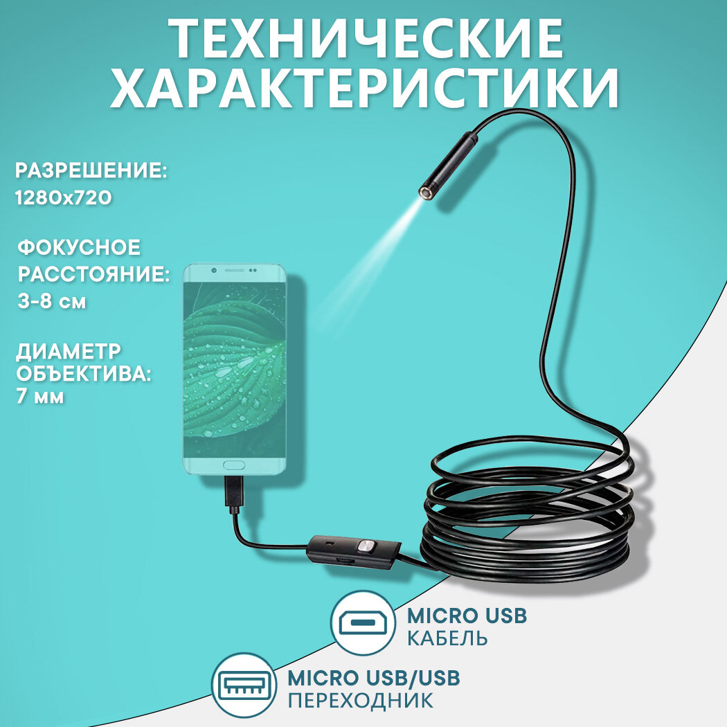 Эндоскоп для смартфона Андроид и компьютера водонепроницаемый InnoZone 720P 7мм гибкая камера, подсветка, длина 2м, для автомобиля и бытовых нужд интересное: