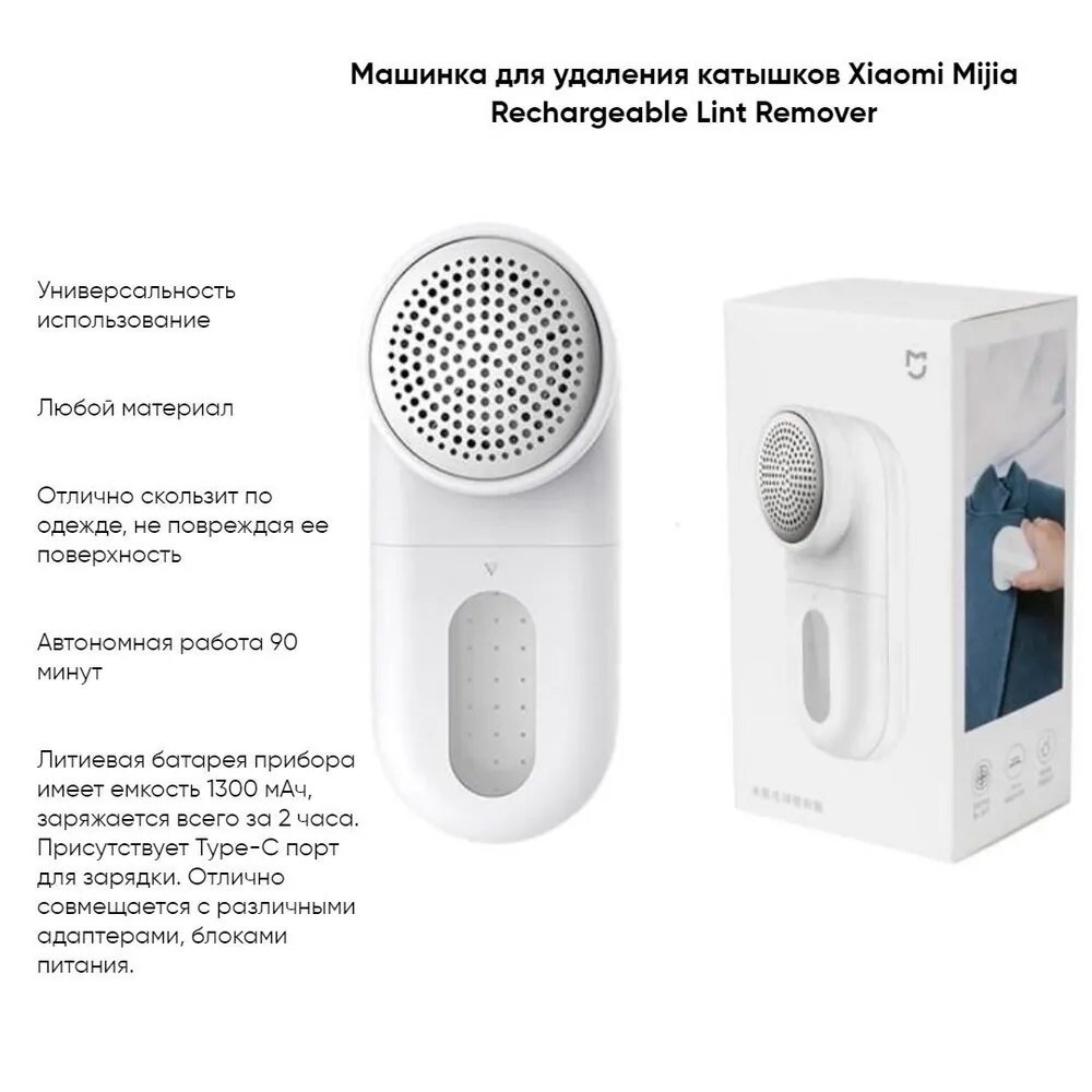 | Комплектация | Машинка для удаления катышков Xiaomi Mijia rechargeable lint remover |
