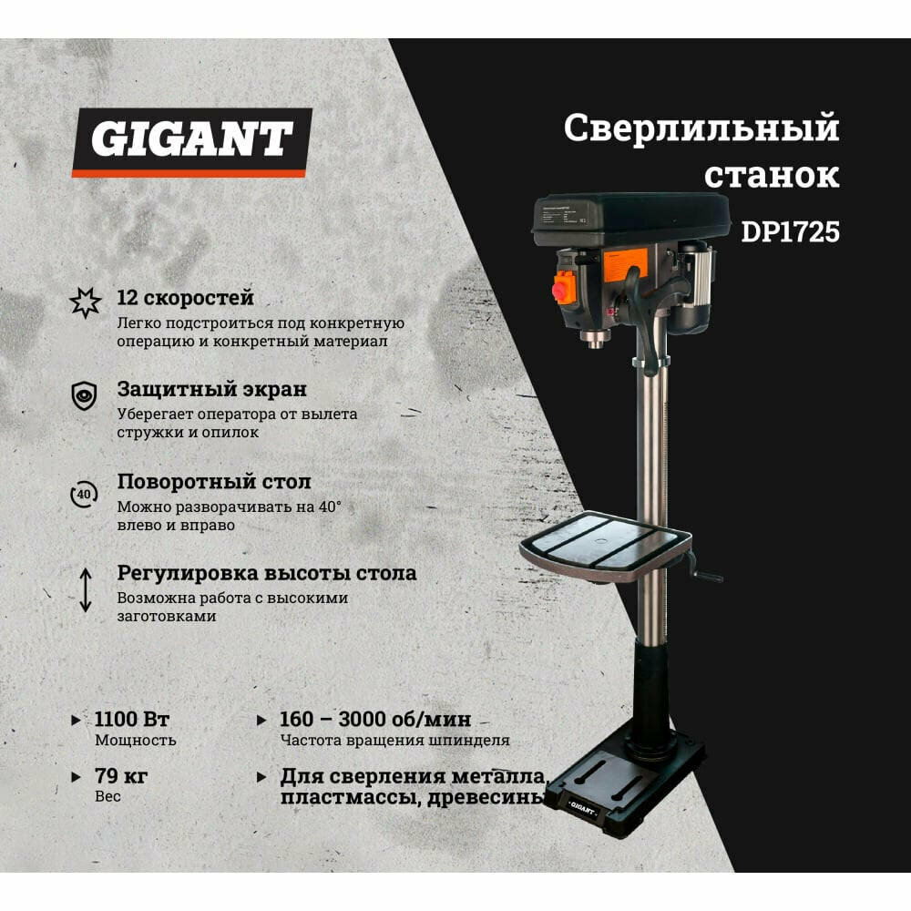 Ниже Вы можете прочитать отзывы на Сверлильный станок Gigant DP1725, ознакомится с подробными характеристиками, посмотреть интересные обзоры и фотографии на Сверлильный станок Gigant DP1725.