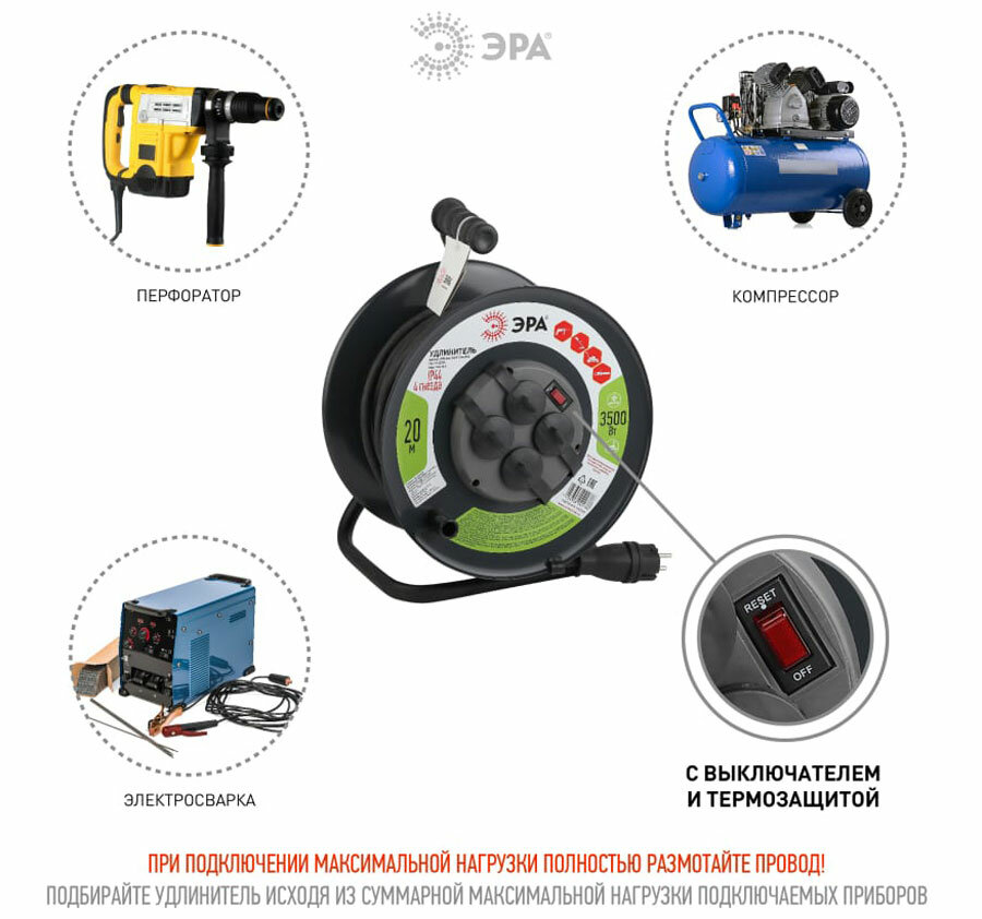 Ниже Вы можете прочитать отзывы на ЭРА Удлинитель силовой RMx-4es-3x2.5-20m-IP44(KG) на м. катушке c/з 4 гн 20м КГ 3х2.5 (1/33), ознакомится с подробными характеристиками, посмотреть интересные обзоры и фотографии на ЭРА Удлинитель силовой RMx-4es-3x2.5-20m-IP44(KG) на м. катушке c/з 4 гн 20м КГ 3х2.5 (1/33).