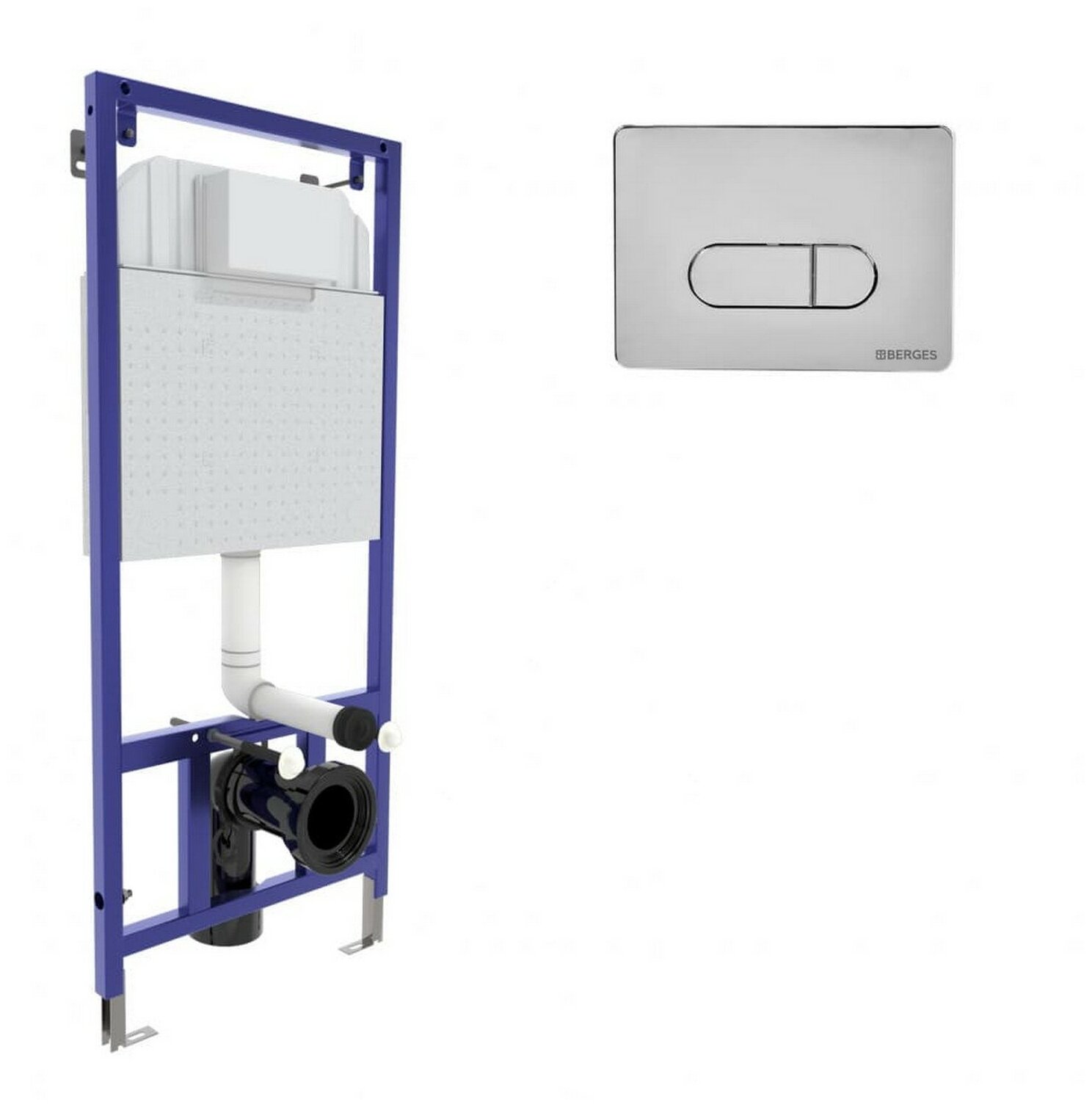 Инсталляция для подвесного унитаза BERGES, кнопка NOVUM D3 хром глянец. 040233