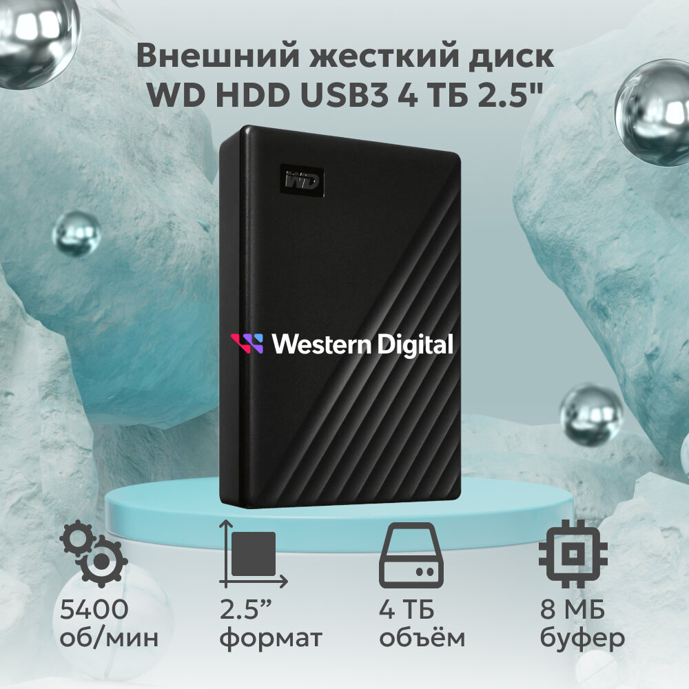 Внешний жесткий диск Western Digital WD My Passport, 4 ТБ, USB 3.2 Gen 1 (WDBPKJ0040BBK-WESN) черный