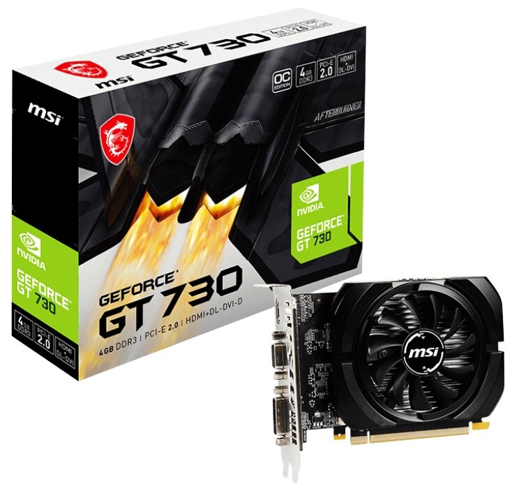 MSI Видеокарта MSI GeForce GT 730 N730K-4GD3/OCV1 (GeForce GT 730, 4ГБ DDR3, D-Sub, DVI, HDMI) (PCI-E) (ret)